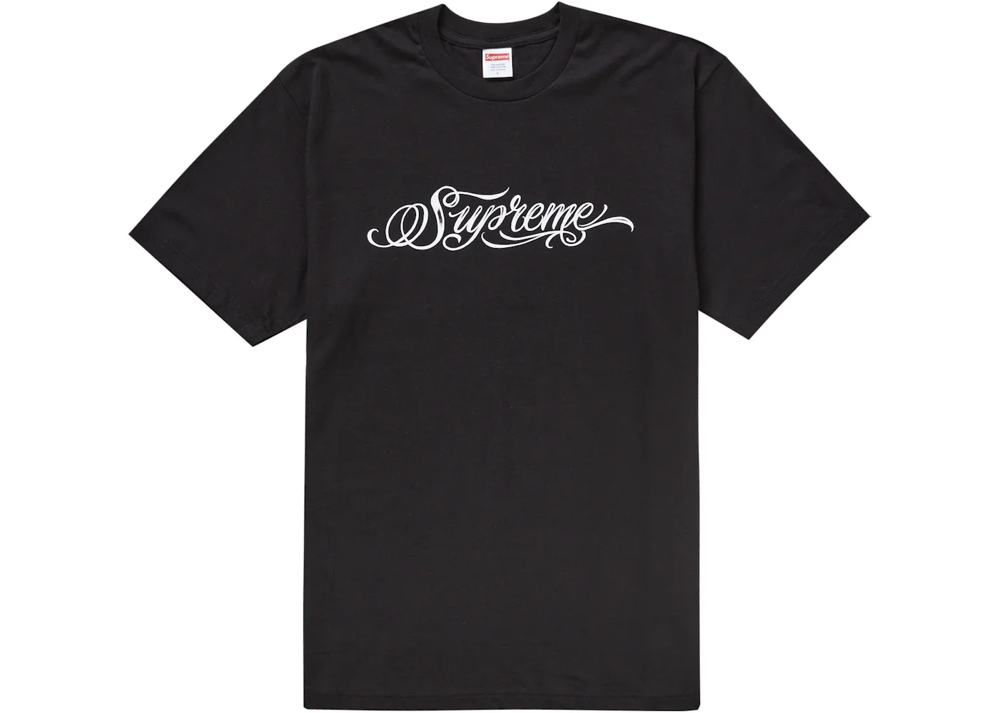 The Supreme Script Tee Black is a short-sleeved t-shirt with a design made by Mister Cartoon, an American tattoo and graffiti artist based in Los Angeles. This iteration of the Supreme Script Tee comes in a black colorway. This color dominates most of the shirt, except for the Supreme branding on the front, which is white. The shirt is made of cotton for maximum comfort and softness. On the front, the Supreme brand name is found in white script text that curls and curves around itself. The back of the t-shirt has no design, allowing the branding on the front to stand out. What we love most about this shirt is the detailing of the script branding, which is surprisingly intricate for a graphic print. The Supreme Script Tee Black first hit the market for purchase on October 10, 2024, for an initial price of $40. - Season FW24 - Color Black - Release Date 2024-10-10 - Retail Price 40 - Featured false - Requester Kelsey K - Uploaded By LL