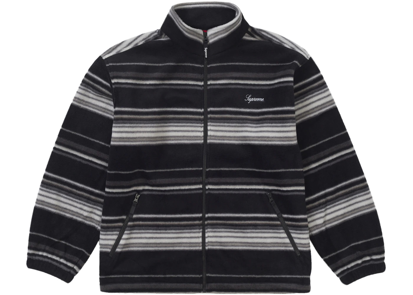 Supreme Stripe Zip Up Fleece Jacket Black