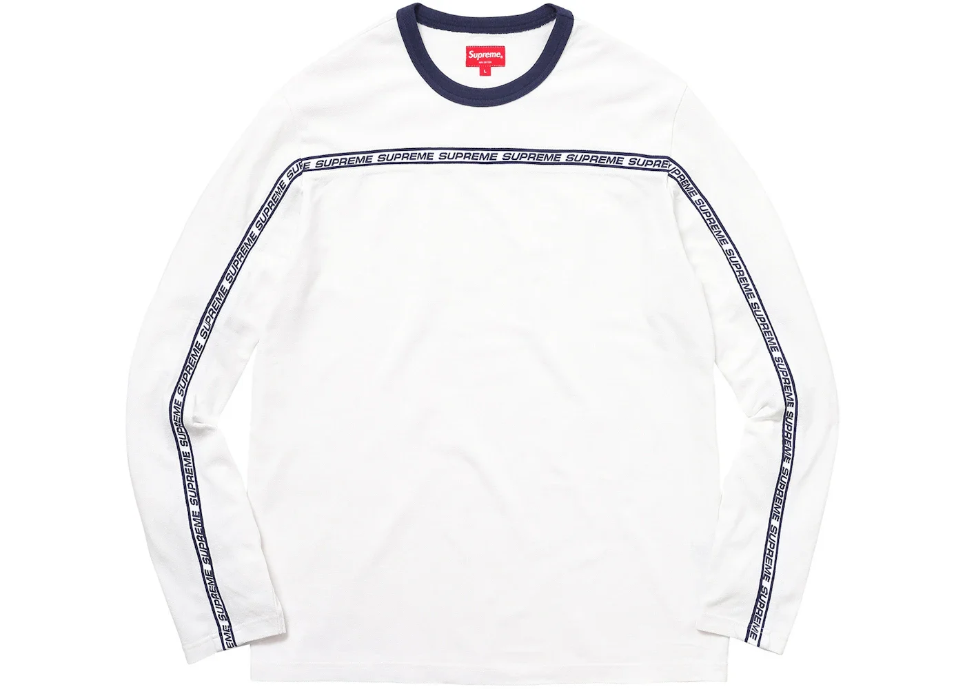 Supreme Tape Stripe L/S Pique Top White