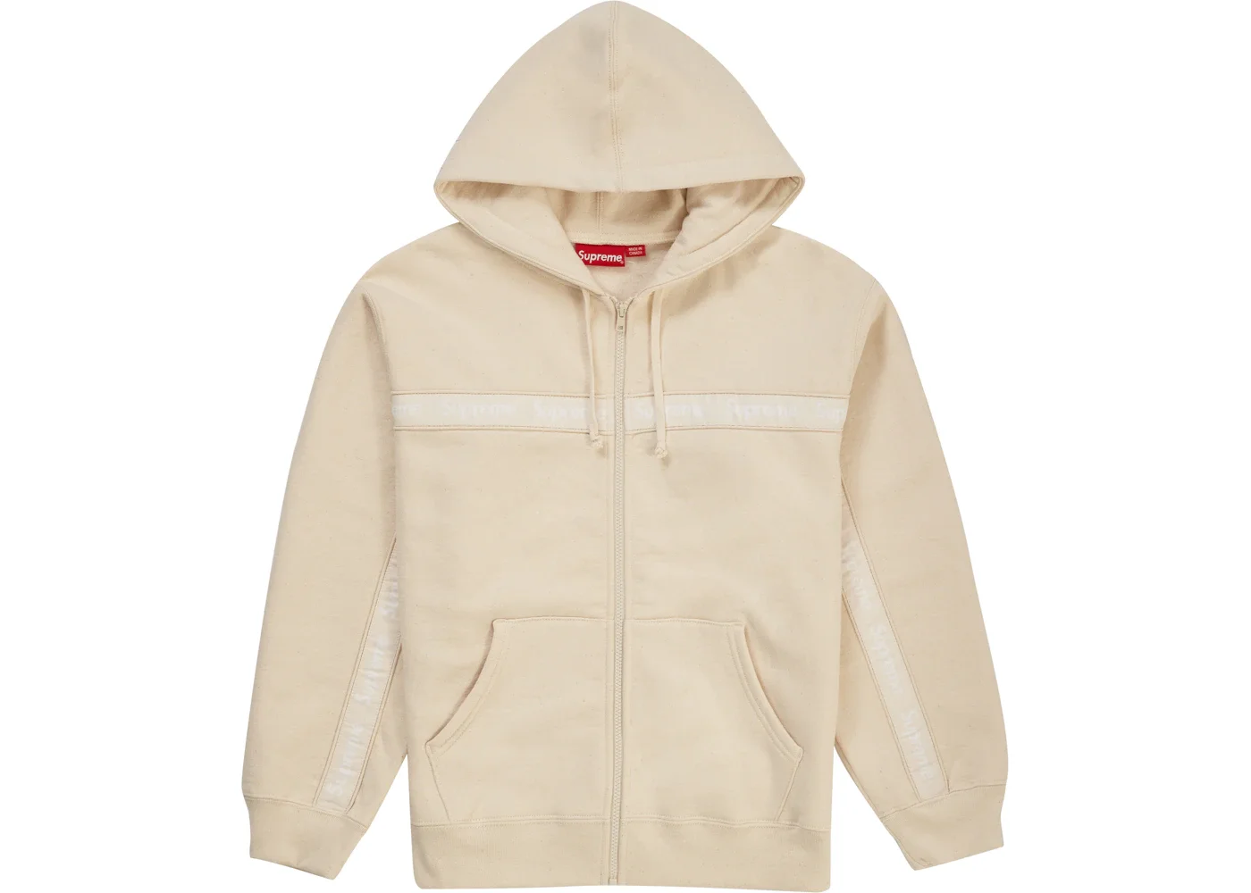 Supreme Text Stripe Zip Up Hooded Sweatshirt Natural