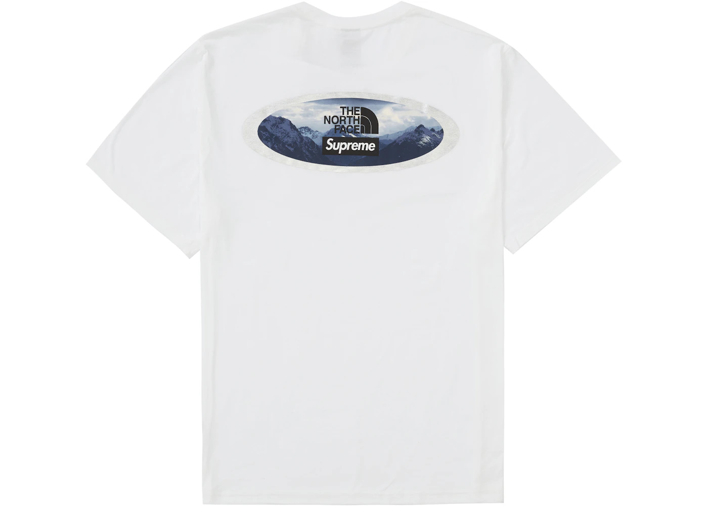 This white Supreme T-shirt was released in Week 9 of the brand's Fall/Winter 2021 season as a part of their first The North Face collaboration. The Supreme The North Face collaboration that this t-shirt was released as a part of included three new jackets and several other apparel pieces. This t-shirt in particular features a Supreme The North Face logo on the front and back. This Supreme The North Face Mountains T-shirt in white was released at the retail price of $58 on October 21st, 2021. - Season FW21 - Color White - Release Date 2021-10-21 - Retail Price 58 - Featured false