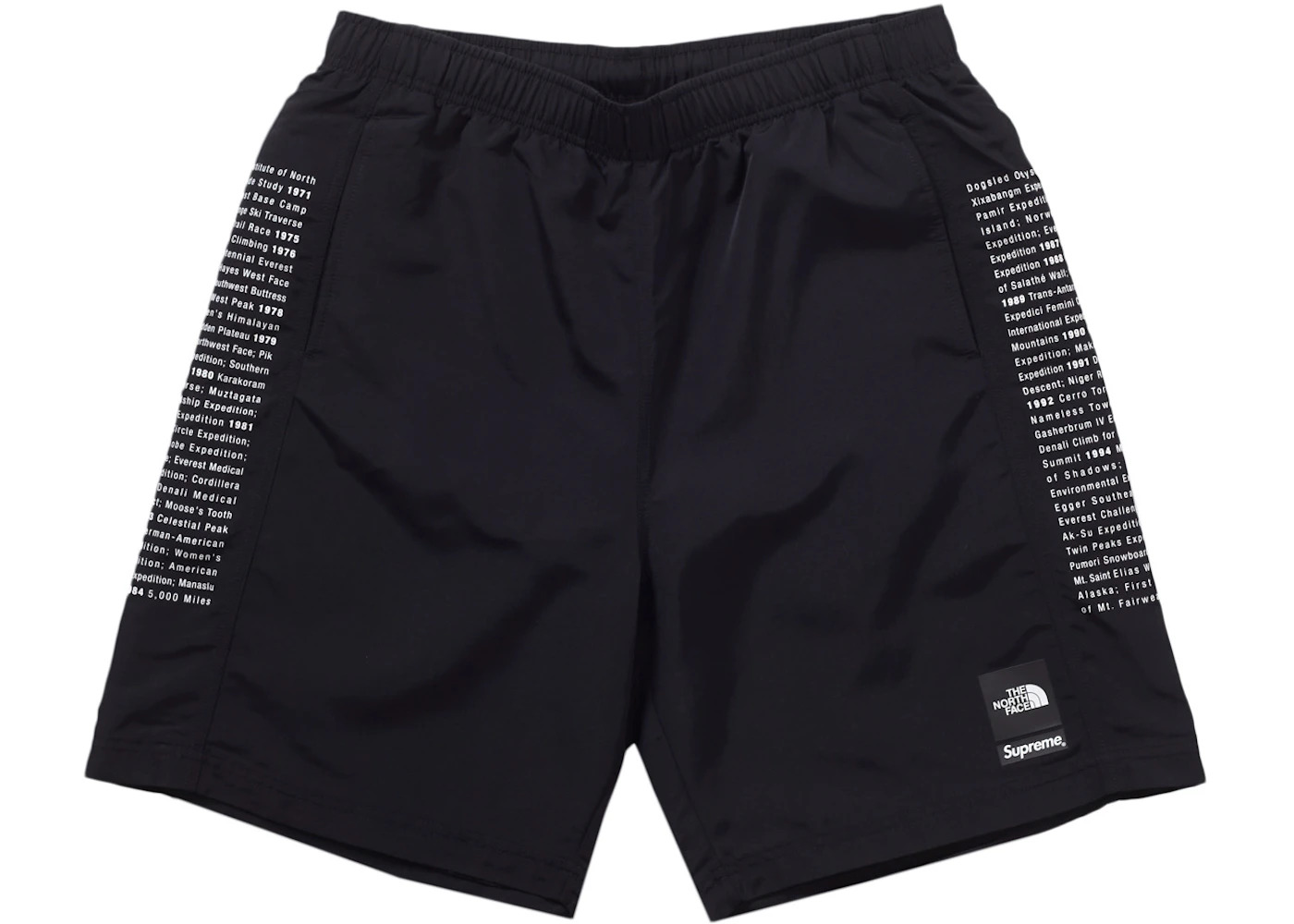 The Supreme The XX North Face Nylon Short Black is a pair of shorts designed as a collaboration between the brands with unique branding elements. This iteration of the Supreme The XX North Face Nylon Short comes in a mostly black colorway. The shorts are made of nylon with a nylon lining and contain two front pockets and a zip pocket on the back. On the bottom left corner of the front of the shorts, you can find The North Face logo and a Supreme logo box in black and white. On the sides of the shorts in vertical columns is white text outlining years and names of important outdoor expeditions. There is also an interior draw cord for an adjustable fit around the waist. What we like best about these shorts are the columns of white text running down the sides, which add a welcome deviation to the otherwise black design. The Supreme The XX North Face Nylon Short Black was first introduced on the 29th of February, 2024, for a price of $98. - Season SS24 - Color Black - Release Date 2024-02-29 - Retail Price 98 - Featured false - Requester Kelsey K - Uploaded By LL