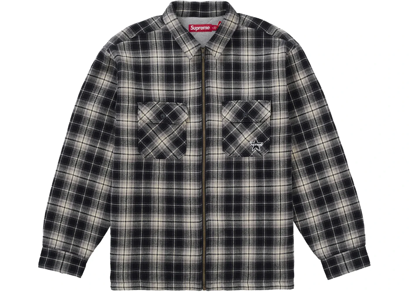 Supreme Thermal Lined Zip Up Flannel Shirt Black