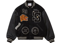 The Supreme Tiger Varsity Jacket Black comes in a black colorway with white accents. The Tiger Varsity Jacket in Black is made from premium quality wool that gives it a warm feel. The sleeves, neckline, and waistband are adorned with a striped design. On the black, the Supreme logo is embroidered in white, while on the front the S lettering appears on the front. This varsity jacket has a ribbed collar, cuffs, and hem, which provides a snug fit and adds to its classic look. The front snap-button closure provides easy access, and the two side pockets offer useful storage space for small essentials. We think that what sets this jacket apart is the intricate embroidery of a fierce tiger on the front. The vibrant colors of red, yellow and white give the tiger a realistic look. The Supreme Tiger Varsity Jacket Black was released on August 17th, 2023 at a retail price of $498. - Season FW23 - Color Black - Release Date 2023-08-17 - Retail Price 498 - Featured false - Uploaded By LL