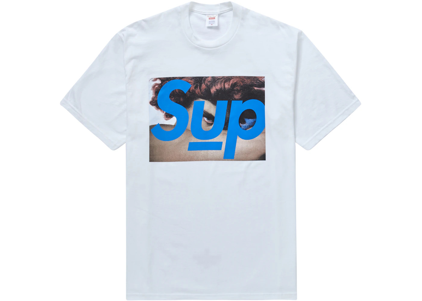 The Supreme UNDERCOVER Face Tee White is a unisex cotton t-shirt designed as a collaboration between the two brands. This iteration of the Supreme UNDERCOVER Face Tee is made with white cotton for comfort and breathability. On the front, you can find a printed graphic of a human face with a covered mouth taking up the entire chest. On top of this photo, "Sup", part of the Supreme brand name, appears in blue with the U underlined to represent the UNDERCOVER brand. The back of the t-shirt does not have any designs except for dual Supreme and UNDERCOVER branding in black at the bottom. What we like most about this shirt is the dual branding on the back, which is subtle and doesn’t disturb the t-shirt’s bold design. The Supreme UNDERCOVER Face Tee White was released on March 30, 2023, for an original price of $54. - Season SS23 - Color White - Release Date 2023-03-30 - Retail Price 54 - Featured false - Uploaded By LL