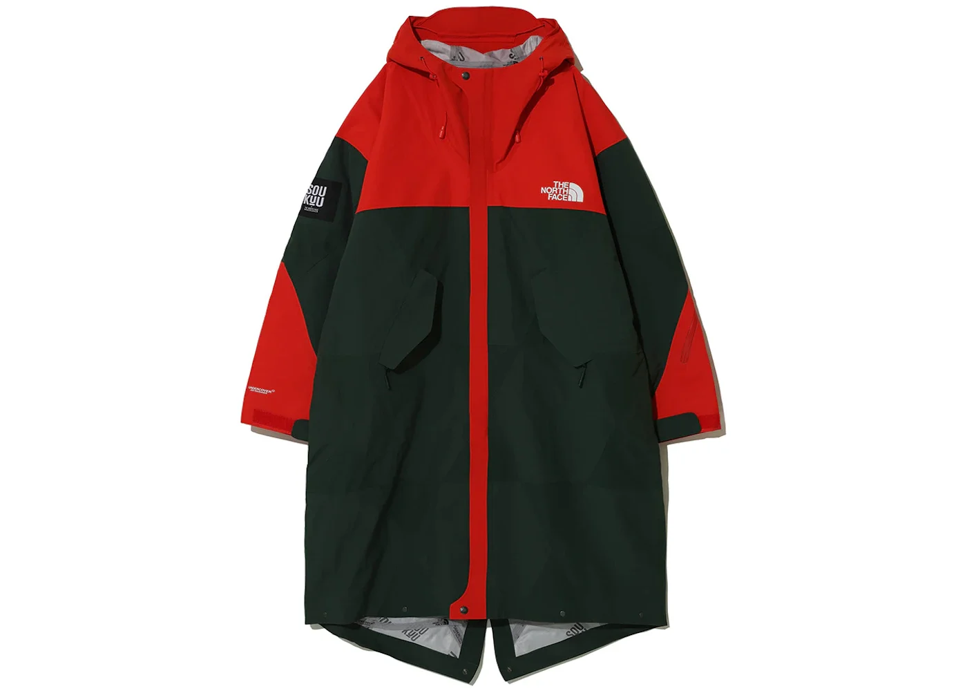 Standard fit: This garment is true to size for an easy, comfortable fit.Part of an exclusive collaboration with iconic streetwear brand Undercover, our Geodesic Shell Jacket will keep you comfortable, dry and looking sharp during all kinds of outdoor activities. Seam-sealed DryVent™ fabric stops wind and water from seeping through the gaps without compromising on breathability. You'll stay protected from the elements, but you won't overheat. The below-the-knee-length fishtail parka transforms into a mid-length jacket, giving you style options. - Season FW23 - Color Dark Cedar Green/High Risk Red - Release Date 2023-10-24 - Style 84S5 - Retail Price 750 - Featured false - Uploaded By LL