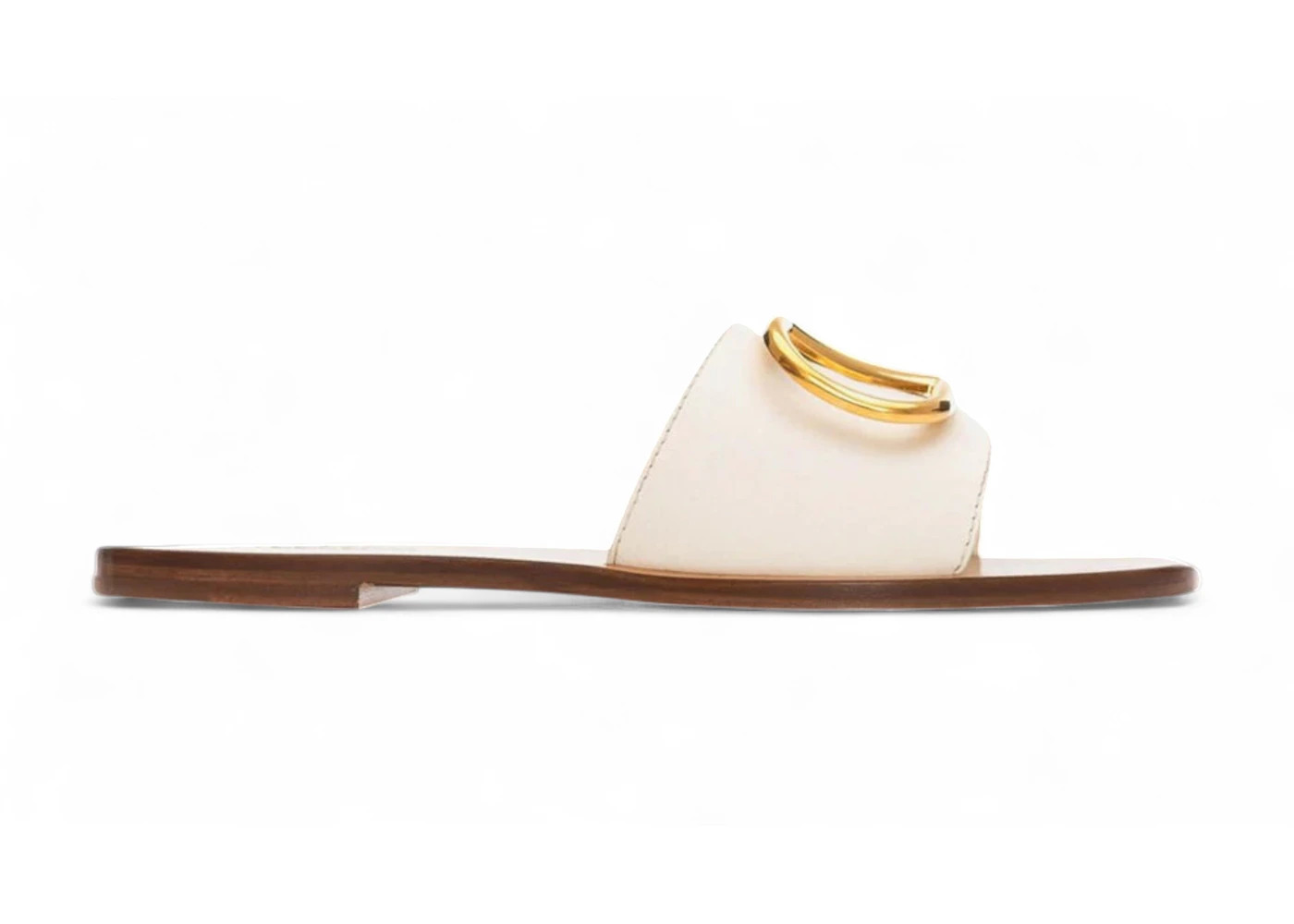 Valentino Calfskin Point Vlogo Signature Slide Sandal Ivory (Women's)