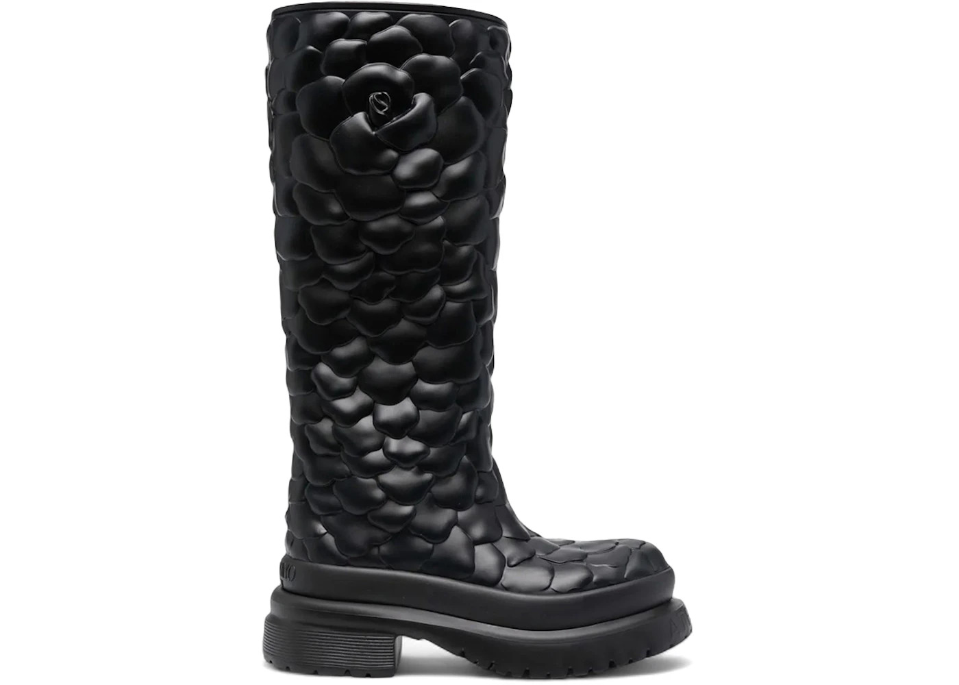Valentino Garavani Atelier Floral-Embossed Mid-Calf Rain Boots Black (Women's)