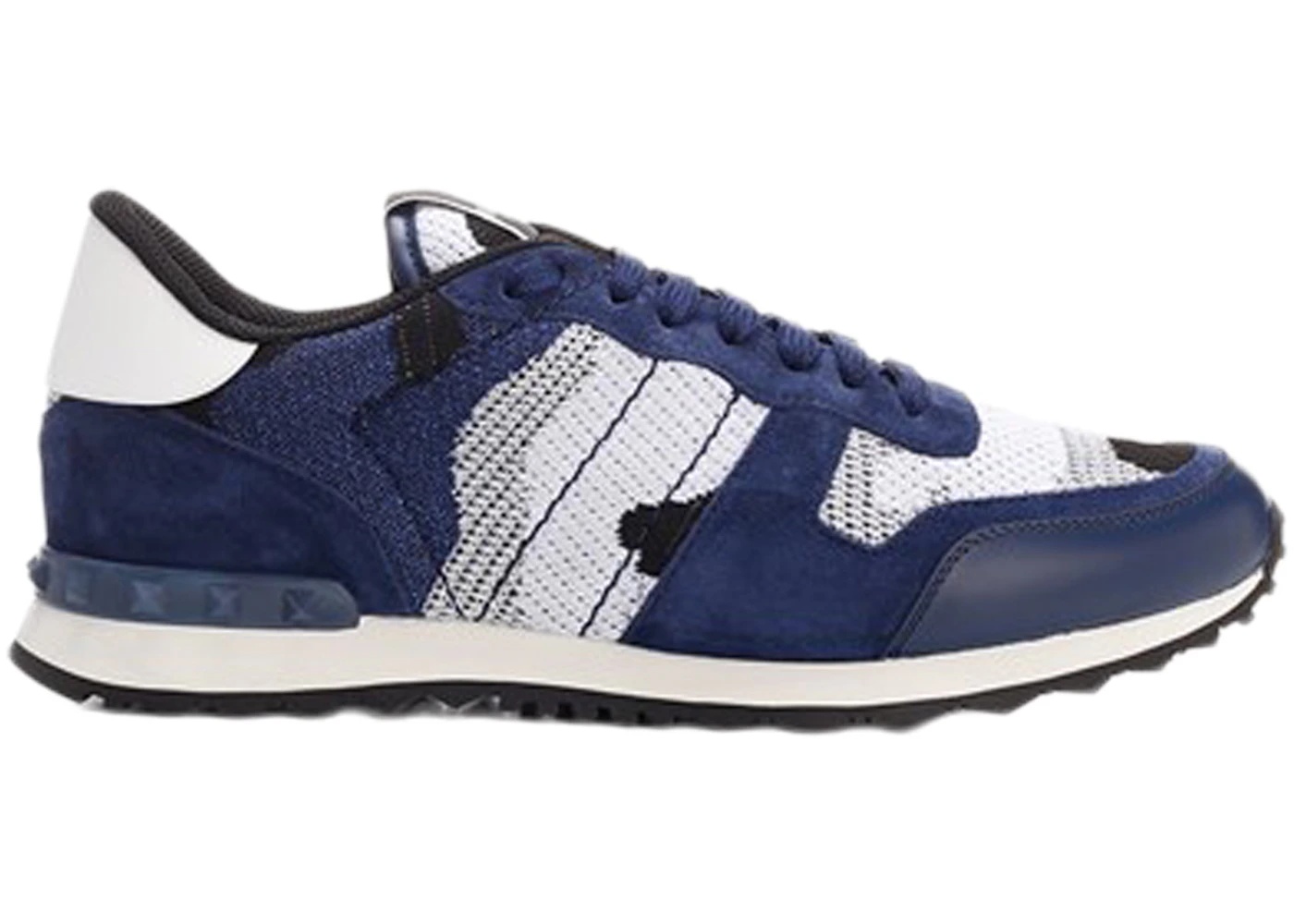 Valentino Garavani Rockrunner Mesh Fabric Camouflage Navy White