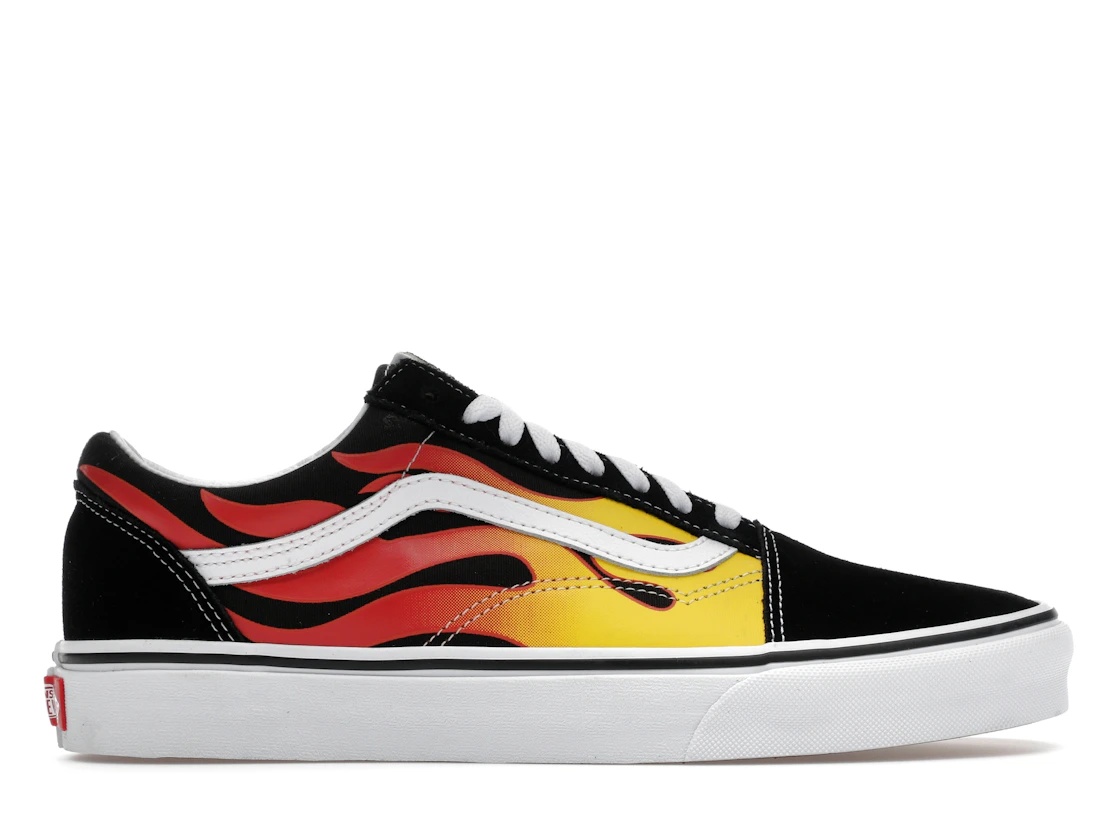 The Vans Old Skool Flame 2017 was released as a part of the Vans Old Skool lineup. The Flame 2017 Vans Old Skool has an upper that is constructed of canvas and suede materials. It features a flame design that is created through the use of screen printing onto the side panels. The sneaker boasts Vans signature waffle outsole, which provides traction on different surfaces. The shoe also has a cushioned insole that forms to the feet and comes with flat, white laces. The Vans Old Skool Flame 2017 was released on May 10th, 2017, at a retail price of $75. - Style VN0A38G1PHN - Colorway Black/True White - Retail Price 75 - Release Date 2017-05-10 - Featured false