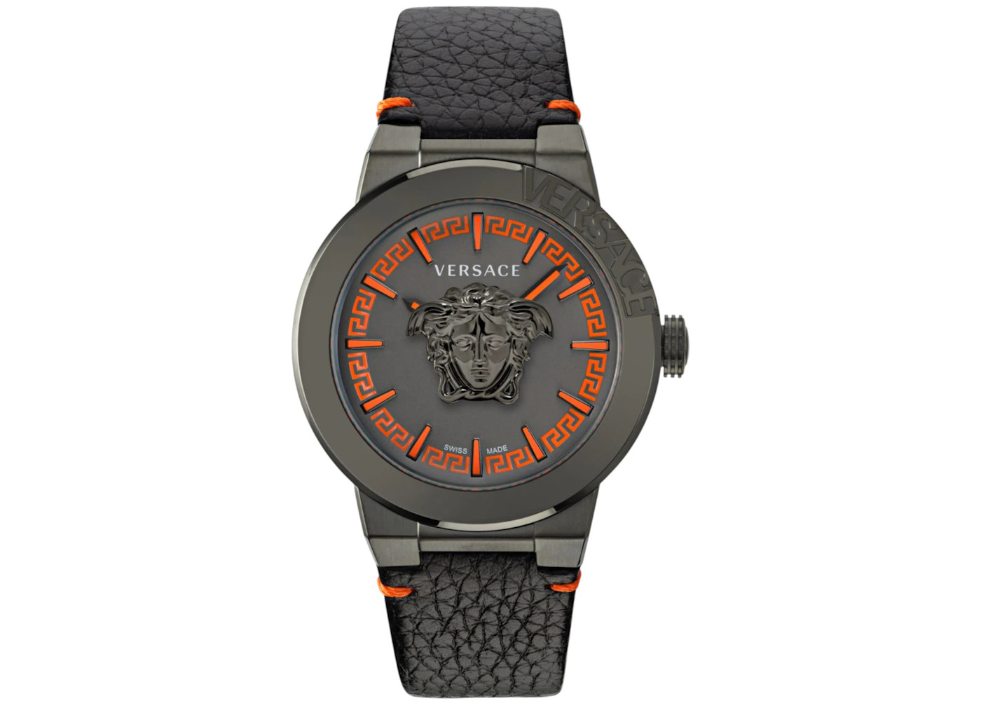 - Reference Number VE7E00323 - Case Size 47mm - Case Material Stainless Steel - Band Leather - Movement Quartz - Dial Black Matte - Retail Price 1595 - Base Model Medusa Infinite - Featured false - Requester Kelsey K - Styles Casual - Uploaded By VL