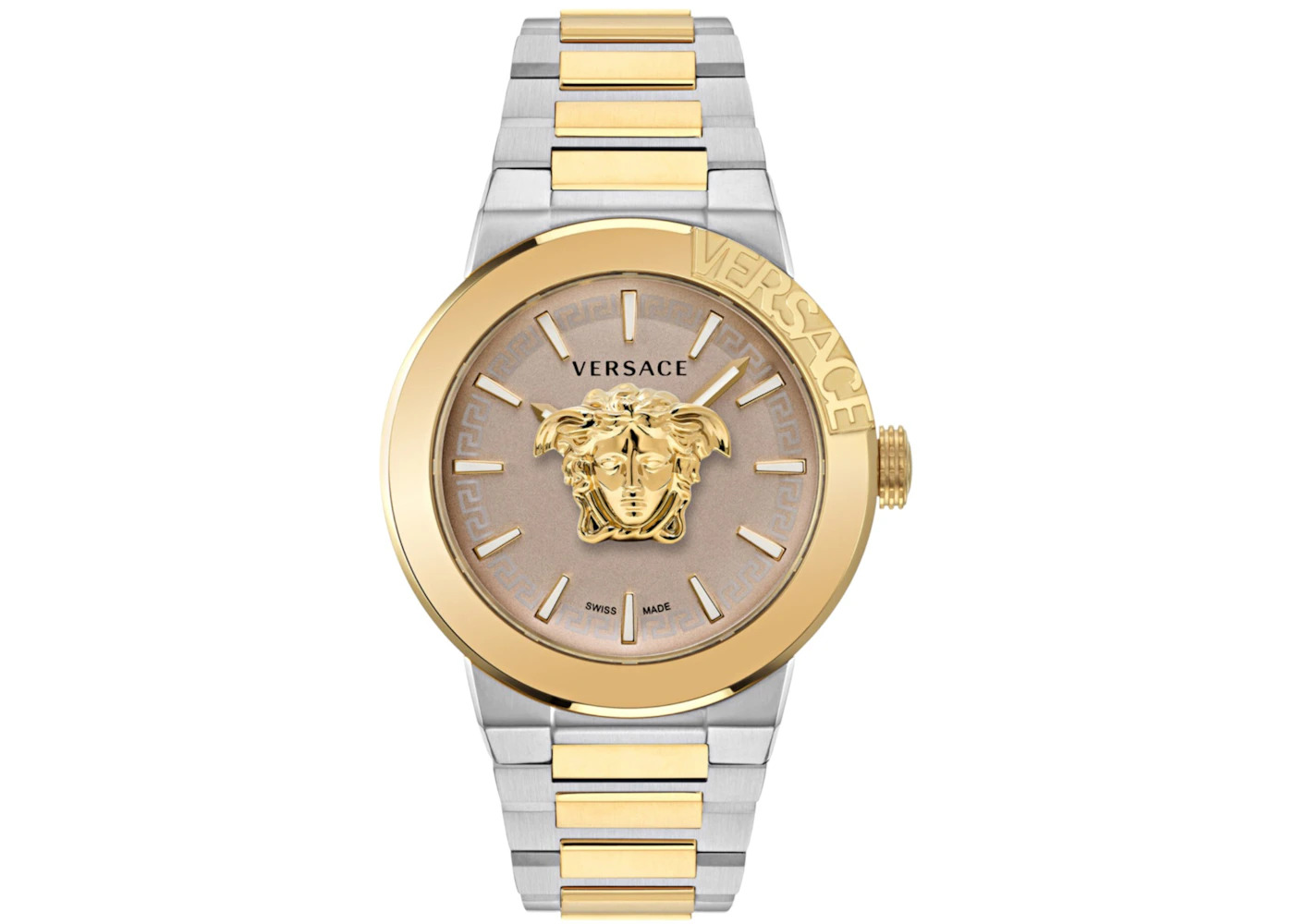 - Reference Number VE7E00423 - Case Size 47mm - Case Material Stainless Steel - Band Two Tone - Movement Quartz - Dial Ivory Matte - Retail Price 1695 - Base Model Medusa Infinite - Featured false - Requester Kelsey K - Styles Casual - Uploaded By VL