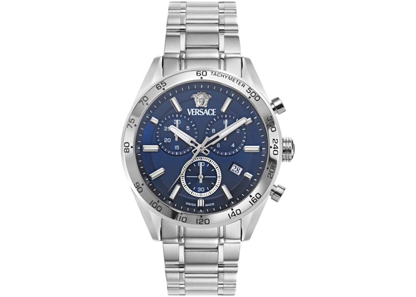 - Reference Number VE0CA0124 - Case Size 41 mm - Case Material Stainless Steel - Band Stainless Steel - Movement Quartz - Dial Blue Sunray - Retail Price 1295 - Base Model V-Code Chrono Bracelet - Featured false - Requester Kelsey K - Styles Casual - Uploaded By VL