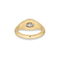 - Birthstone: 7.2mm x 5mm oval (approx) - Carat weights: Garnet (January) 0.7 CTWAmethyst (February) 0.7 CTWAquamarine (March) 0.7 CTWLAB diamond (April) 0.75 CTWEmerald (May) 0.9 CTWMoonstone (June) 0.7 CTWRuby (July) 1.0 CTWPeridot (August) 0.7 CTWBlue sapphire (September) 1.0 CTWPink topaz (October) 0.7 CTWCitrine (November) 0.7 CTWBlue topaz (December) 0.7 CTW - Signet height: 7.5mm - 14k Solid yellow gold - Ethically sourced and sustainable materials with conflict free gemstones - Band width: 2.9mm - Please note that all stones are unique and colors will vary slightly Additional Information Infuse your jewelry collection with a little color. Our gemstone pieces are designed to add a splash of creativity and whimsy to your look. Since we use all-natural gems, each unique stone is cut to the perfect size and shape. Your piece is meant especially for you. As our gemstones are ethically earth-mined and collected only in quantities that we can source, our gemstone designs are always limited edition and handcrafted into something exceptional with the best value.