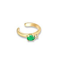 - Interior dimensions: 9mm x 11mm - Ethically sourced materials and conflict-free diamonds - Cuff opening: 5mm - Please note that all stones are unique and colors and shapes will vary slightly - Emerald: 0.16CTW (approx) - Natural white diamond: 0.03CTW (approx) - 10K Solid yellow gold - Fully compliant with The Kimberley Process - Diamond color/clarity: GH/SI Additional Information Infuse your jewelry collection with a little color. Our gemstone pieces are designed to add a splash of creativity and whimsy to your look. Since we use all-natural gems, each unique stone is cut to the perfect size and shape. Your piece is meant especially for you. As our gemstones are ethically earth-mined and collected only in quantities that we can source, our gemstone designs are always limited edition and handcrafted into something exceptional with the best value.