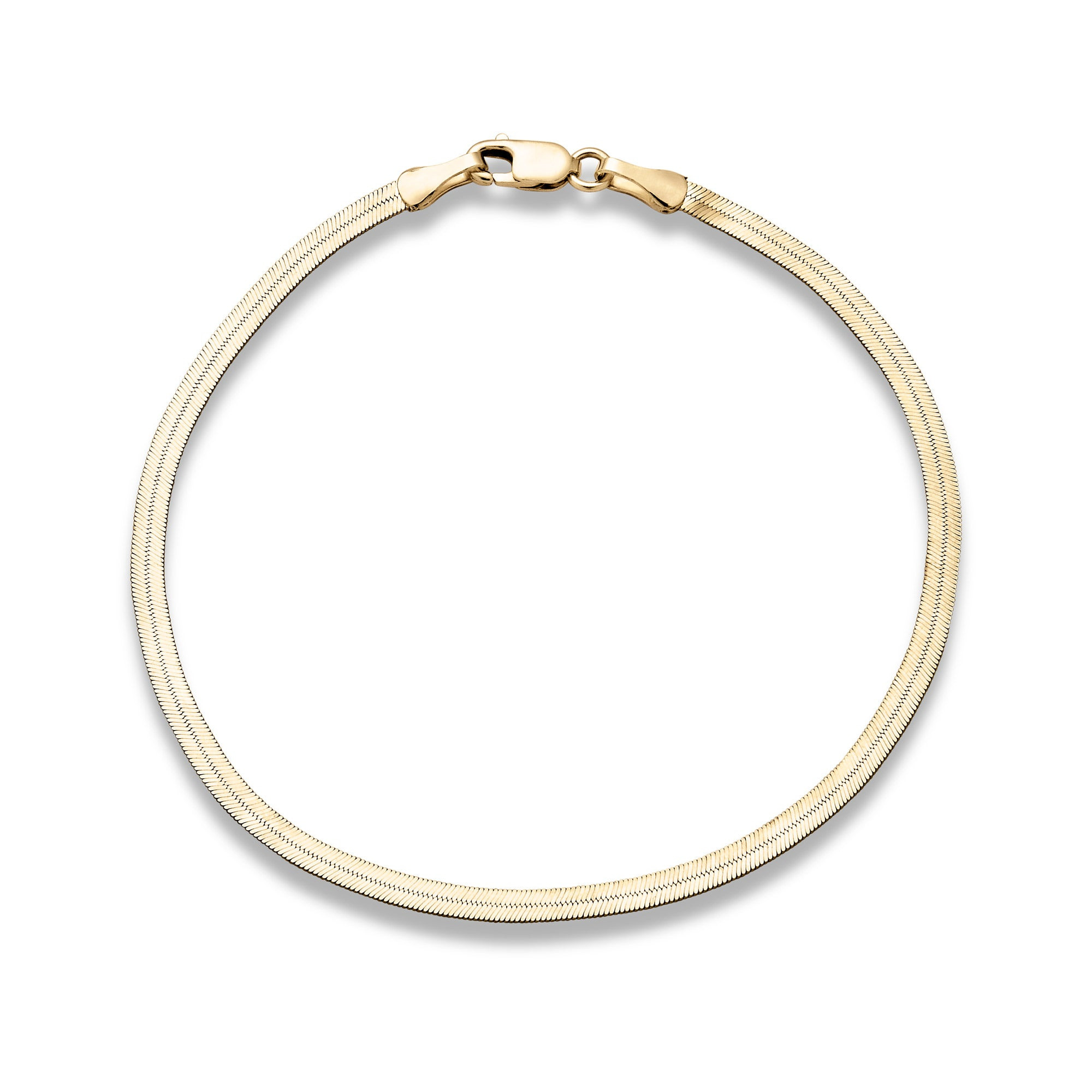 - Herringbone width: 2.4mm - Lobster clasp - Length: 7" - 10K Solid yellow gold - Please note that herringbone chains must be stored flat Additional Information We're forever fans of solid gold — it's the perfect material for crafting our collection of timeless, everyday jewelry . We focus on creating a range of staples made from materials of the very highest quality - namely 100% solid gold that won't tarnish or flake. And, because it's our goal to always be fair with our pricing, we offer the best value for these never-take-off styles.
