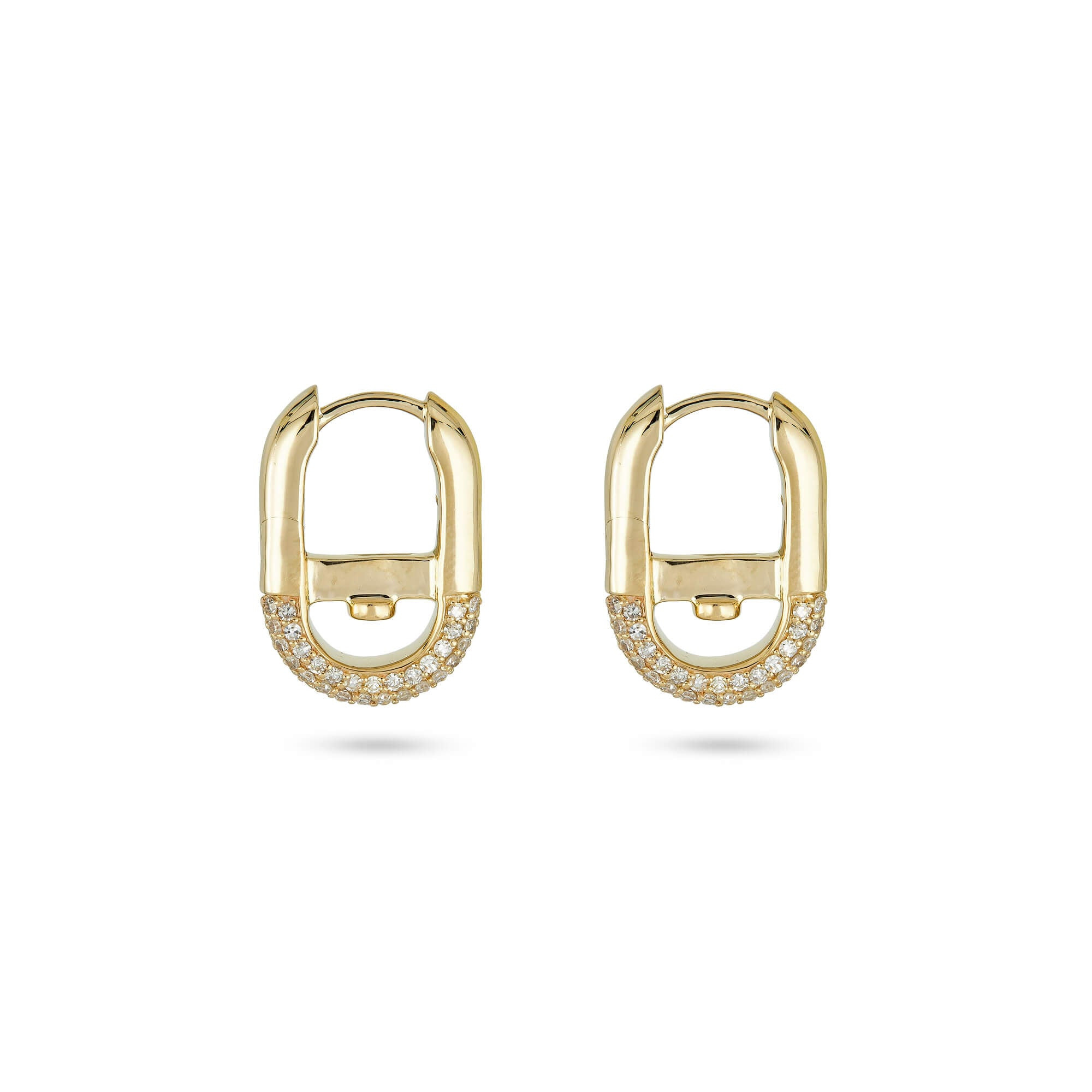 - Ethically sourced materials and conflict free diamonds - Full-cut handpicked natural white diamonds - Hoop closure - Fully compliant with The Kimberley Process - Sold as a pair Stones Total Weight (CTW): 0.76ct (approx) Color: GH Clairity: SI2 Metals Metal Type: Gold Metal Color: Yellow Gold Metal Finish: High Polish Gold Karat: 14K Dimensions Earring Dimensions: 18.3mm x 12.7mm Inner Diameter: 8.4mm x 7.4mm Additional Information It's hard to resist the sparkly spread of pave diamonds, nestled together side by side. Our pieces are hand-set under a microscope, meaning that even the smallest details get our full attention. Every diamond counts. Still, our ultimate goal when making jewelry is to give you the best value, which means conflict-free diamonds and solid gold, and a price that is fair. We believe that you can't ever go wrong with more sparkle, so we do our best to give you everything you deserve.