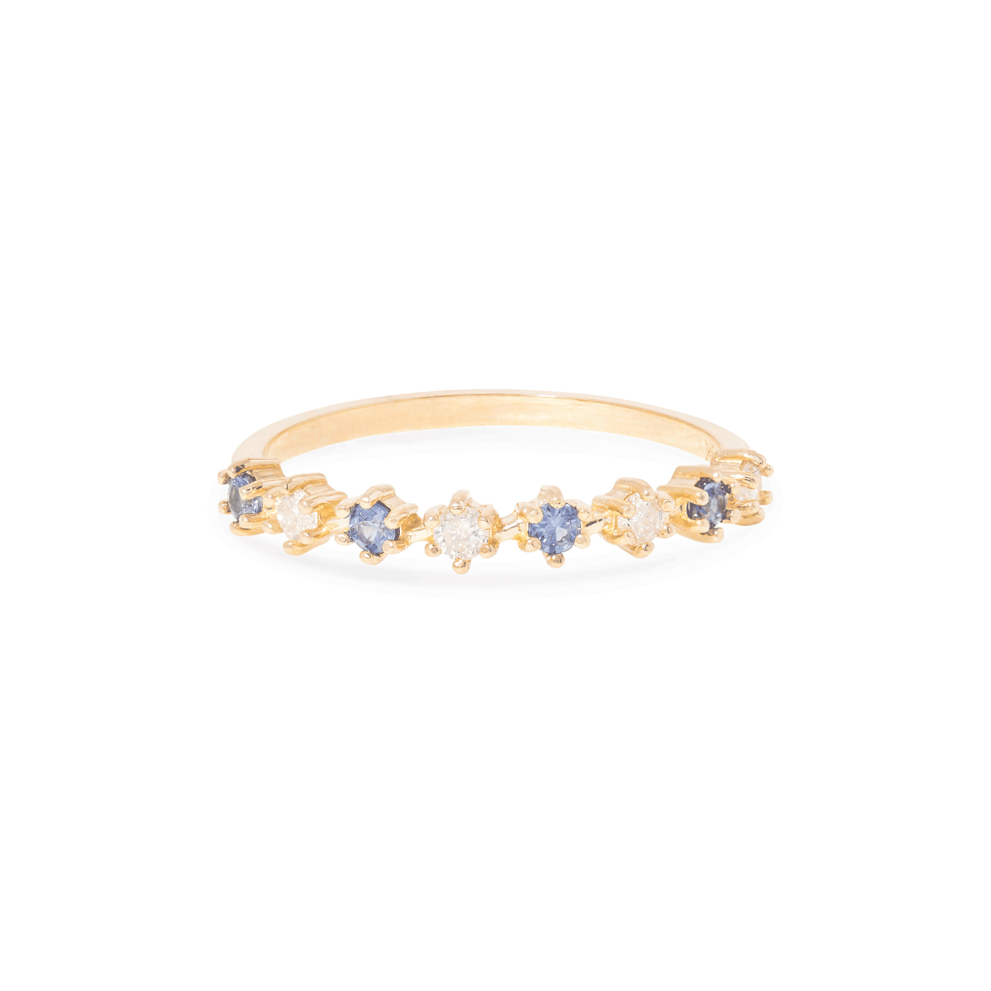 - Blue sapphire - White diamond - Handpicked GH/SI to I diamonds - 10K Solid yellow gold Additional Information Pointe A provides one-of-a-kind colored gemstones in delicate doses. Designed to satisfy even the most minimal of minimalists, these pieces will bring your jewelry look up to date in a flash. Even better, this collection is always limited edition, special and 100% ethically earth-mined. Quantities are determined by the number of stones we can source, all are set in solid gold and no two pieces are ever exactly alike. We may have expensive taste, but crazy mark-ups aren't really our thing. By focusing on quality that matters, we just give you the good stuff.