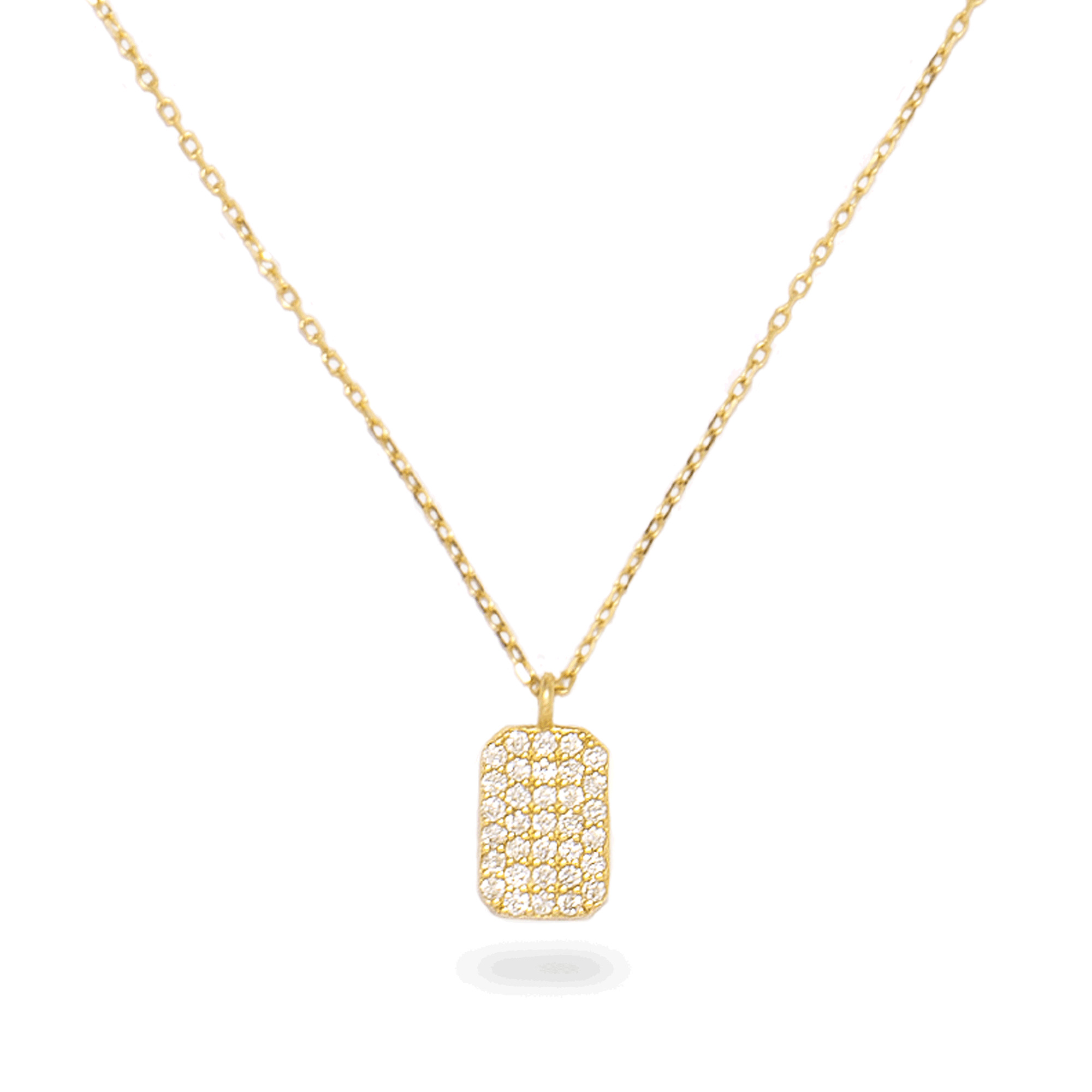 - White Diamond: 0.16CTW (approx) - 16" - 18" Adjustable chain - Pendant: 4 x 6mm - Ethically sourced materials and conflict free diamonds - 14K Solid Yellow Gold - Fully compliant with The Kimberley Process - Diamond color/clarity: GH/SI Additional Information It's hard to resist the sparkly spread of pave diamonds, nestled together side by side. Our pieces are hand-set under a microscope, meaning that even the smallest details get our full attention. Every diamond counts. Still, our ultimate goal when making jewelry is to give you the best value, which means conflict-free diamonds and solid gold, and a price that is fair. We believe that you can't ever go wrong with more sparkle, so we do our best to give you everything you deserve.