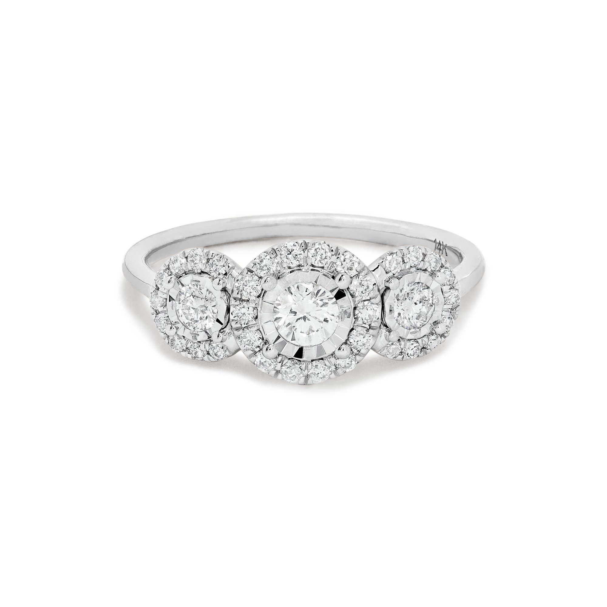 - Handpicked full cut natural diamonds - Fully compliant with The Kimberley Process - Ethically sourced materials and conflict free diamonds - Sparkles brilliantly with our proprietary Perianth™ Jewelry Setting Stones Total Weight (CTW): 0.600ct (approx) Center Stone: 0.200CTW Color: HI Clarity: SI2-I1 Metals Metal Type: Gold Metal Color: White Gold Metal Finish: High Polish Gold Karat: 14K Rhodium Plating: Yes: Diamond area Dimensions Ring Face Measurement: 17mm x 8mm Band Width: 1.5mm Additional Information Finally, the ring you've always dreamed about. Our engagement rings marry the modern and traditional, taking cues from heirloom shapes and updated with modern design touches. Our signature Perianth™Jewelry Setting enhances the sparkle of our engagement rings, delivering extra sparkly looks without extra cost. Whether you've always dreamed of a vintage-inspired ring, or something more modern, our timeless designs are meant to last a lifetime. Each ring is crafted with conflict-free diamonds and set in 14K solid gold or platinum. Diamond carat weights are approximate.