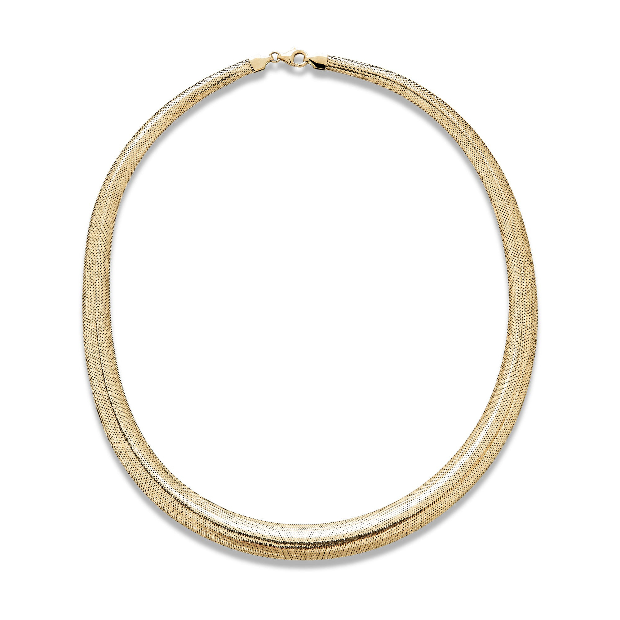 - Please note that piece is made of woven gold and is bendable - Necklace width: 11.75mm - Trigger clasp closure - 10K Solid yellow gold - Necklace length: 18" - Please handle with care - damages to the mesh itself cannot be repaired Additional Information We're forever fans of solid gold — it's the perfect material for crafting our collection of timeless, everyday jewelry . We focus on creating a range of staples made from materials of the very highest quality - namely 100% solid gold that won't tarnish or flake. And, because it's our goal to always be fair with our pricing, we offer the best value for these never-take-off styles.
