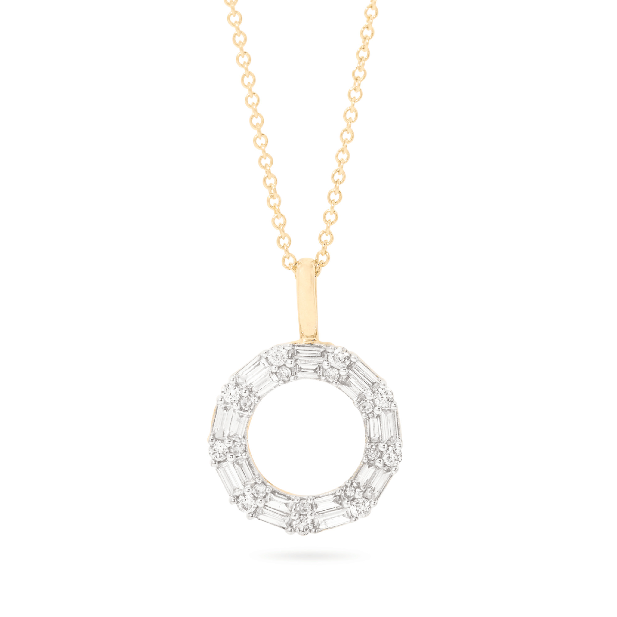 - Natural white diamond: 0.42CTW (approx) - Partially finished with rhodium plating - Adjustable Chain Length 16"-18" - Handpicked very good cut - Ethically sourced materials and conflict free diamonds - 10K Solid yellow gold - Size of circle: 13.7mm - Diamond color/clarity: HI/I2 - Fully compliant with The Kimberley Process Additional Information Diamond jewelry is forever. That's why we focus on the details and great value when it comes to designing our pieces. You'll find sleek, modern styles with keen attention to balance and proportion — because they can't just look good now, they need to last. Designed in NYC, our jewelry uses 100% ethically-mined diamonds, set in solid gold to ensure no tarnishing or flaking.
