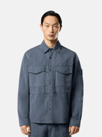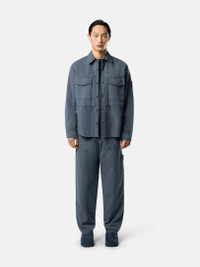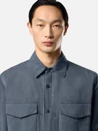 Overshirt in cotton-linen canvas featuring multiple pockets, buttoned cuffs, and button fastening. Garment dyed. FABRIC RESEARCH AND TREATMENT Ghost pieces, derived from the concept of camouflage, are totally monochromatic. Even the Stone Island badge is created in a special monocolor version to blend in with the garment. Overshirt in cotton-linen canvas. Garment dyed. STYLE AND FIT Patch chest pockets with triangular flap and concealed button fastening. Additional vertical chest pockets with snap. Back yoke with darts and internal reinforcement. Stone Island Ghost badge on left sleeve. Button at cuffs. Button fastening. Regular fit. COMPOSITION AND CARE 74% Cotton 26% Flax