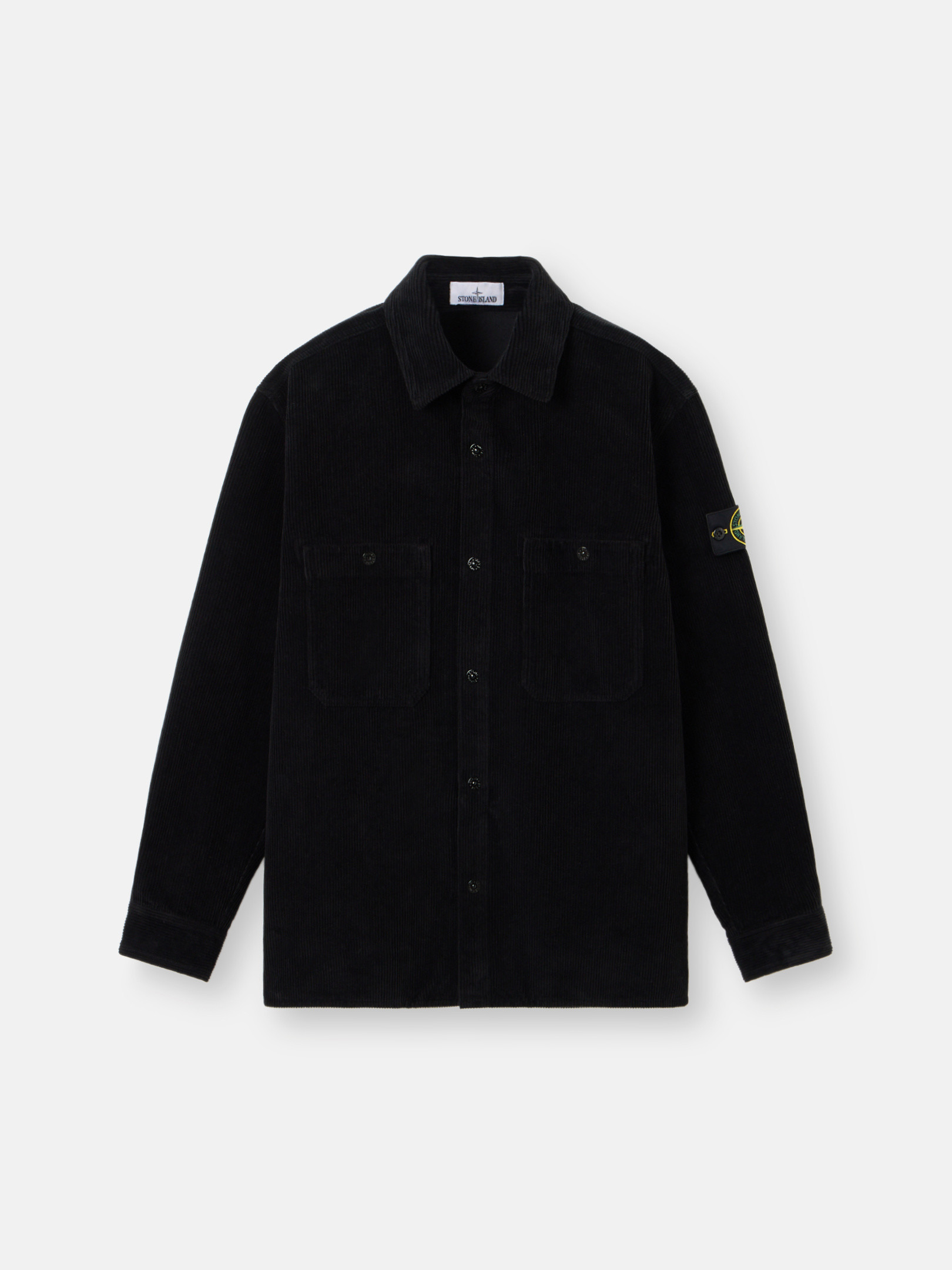 Overshirt in organic cotton corduroy 800 featuring chest patch pockets, cuffs with snaps, and snap fastening. Garment dyed. FABRIC RESEARCH AND TREATMENT Overshirt in organic cotton corduroy 800. Garment dyed. STYLE AND FIT Chest patch pockets with snap. Stone Island badge on left sleeve. Hidden snap on sleeve plackets and snap at cuffs. Snap fastening. Comfort fit. COMPOSITION AND CARE 100% Cotton