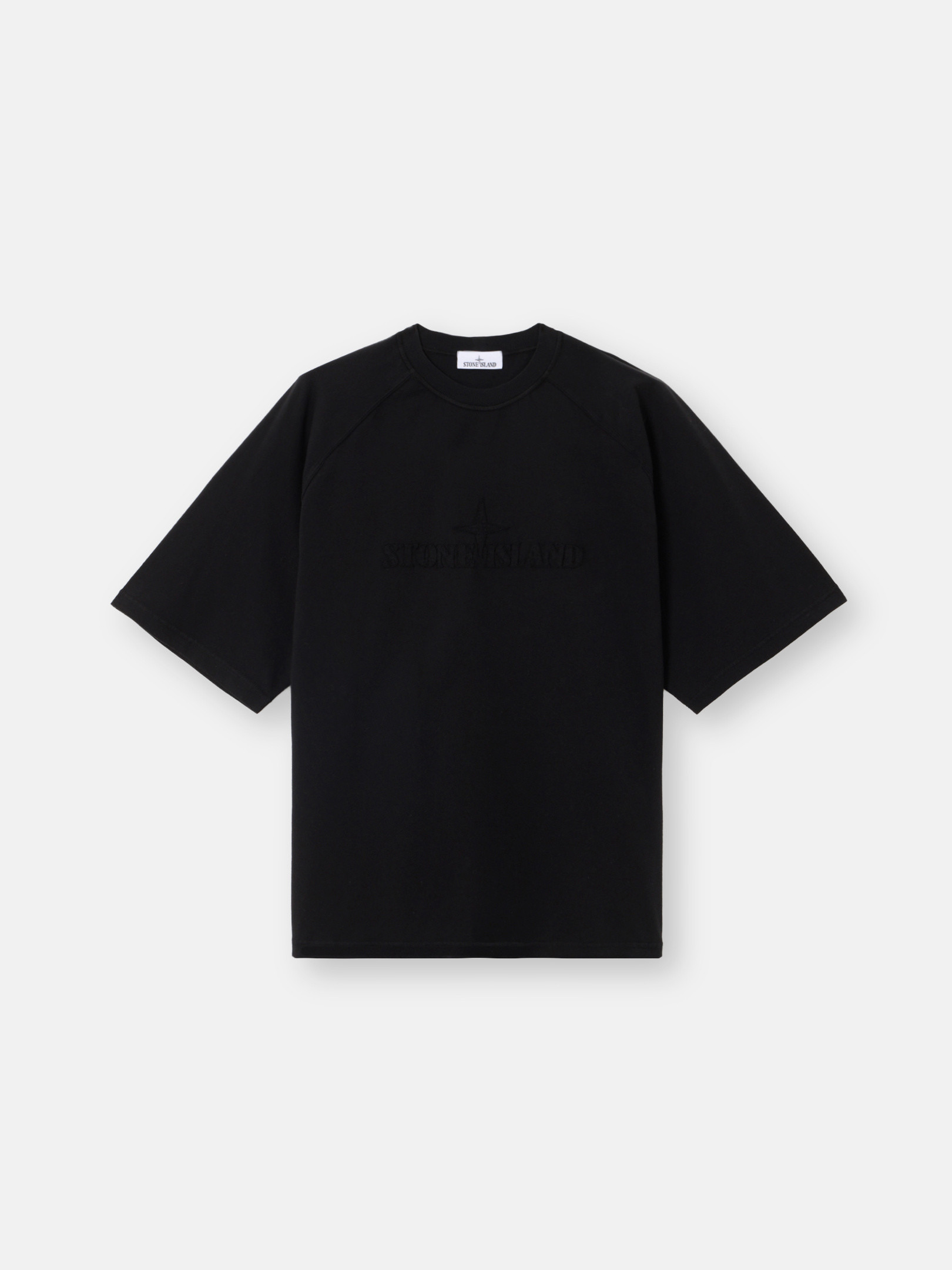 Short-sleeve T-shirt in combed organic cotton jersey featuring raglan sleeves and tonal Stone Island logo embroidery on the chest. Garment dyed. FABRIC RESEARCH AND TREATMENT Short-sleeve T-shirt in combed organic cotton jersey. Garment dyed. STYLE AND FIT Ribbed neckline. Raglan sleeves. Stone Island logo embroidery with same fabric on chest. Oversized fit. COMPOSITION AND CARE Garment: 100% Cotton. Ribbing: 94% Cotton 6% Elastane / Spandex