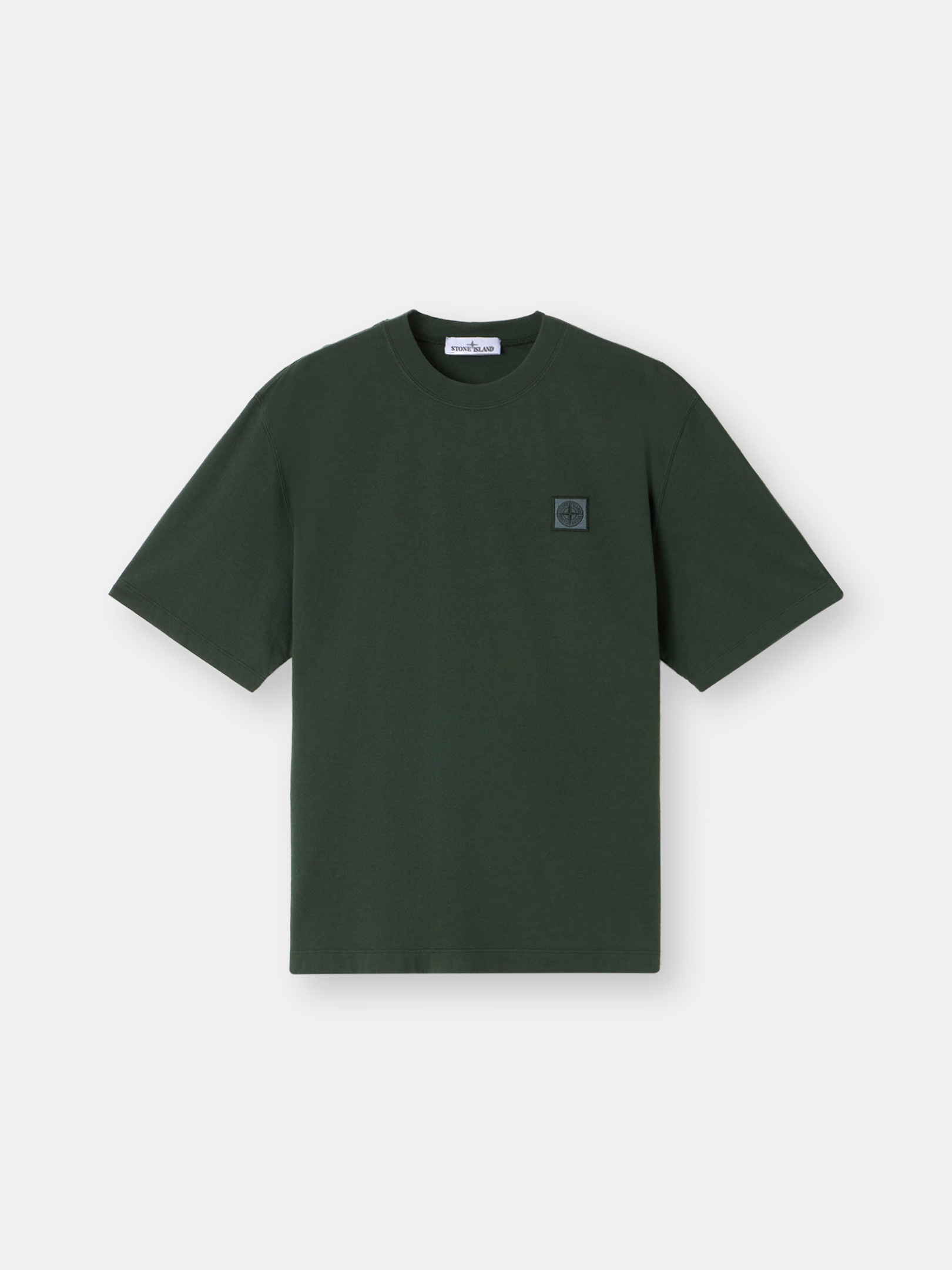 Short-sleeve T-shirt in combed organic cotton jersey, featuring a Compass logo patch on the chest and ribbed neckline. Garment dyed. FABRIC RESEARCH AND TREATMENT Short-sleeve T-shirt in combed organic cotton jersey. Garment dyed. STYLE AND FIT Ribbed neckline. Stone Island Compass logo patch on chest. Regular fit. COMPOSITION AND CARE Garment: 100% Cotton. Ribbing: 94% Cotton 6% Elastane / Spandex