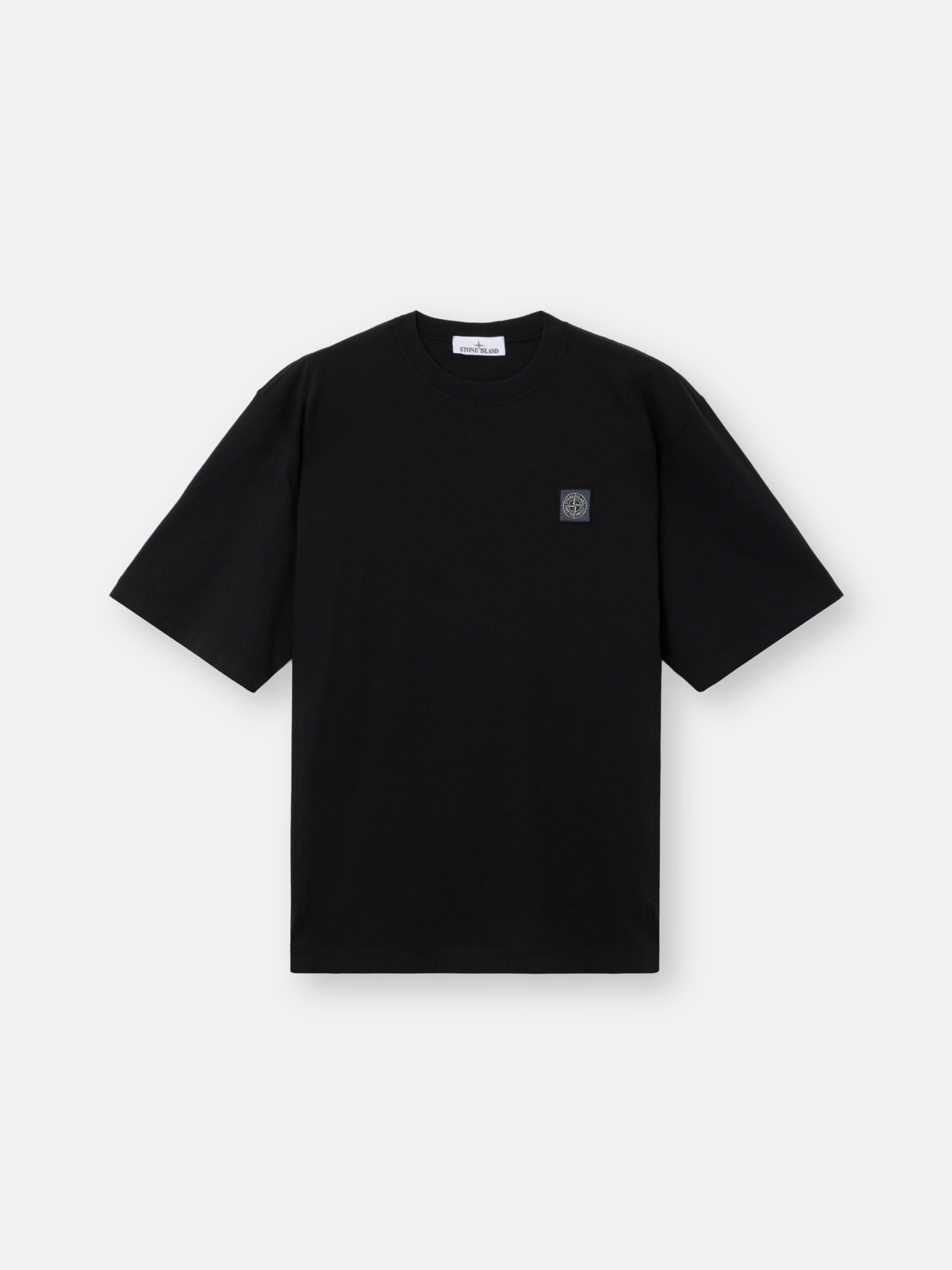 Short-sleeve T-shirt in combed organic cotton jersey, featuring a Compass logo patch on the chest and ribbed neckline. Garment dyed. FABRIC RESEARCH AND TREATMENT Short-sleeve T-shirt in combed organic cotton jersey. Garment dyed. STYLE AND FIT Ribbed neckline. Stone Island Compass logo patch on chest. Regular fit. COMPOSITION AND CARE Garment: 100% Cotton. Ribbing: 94% Cotton 6% Elastane / Spandex