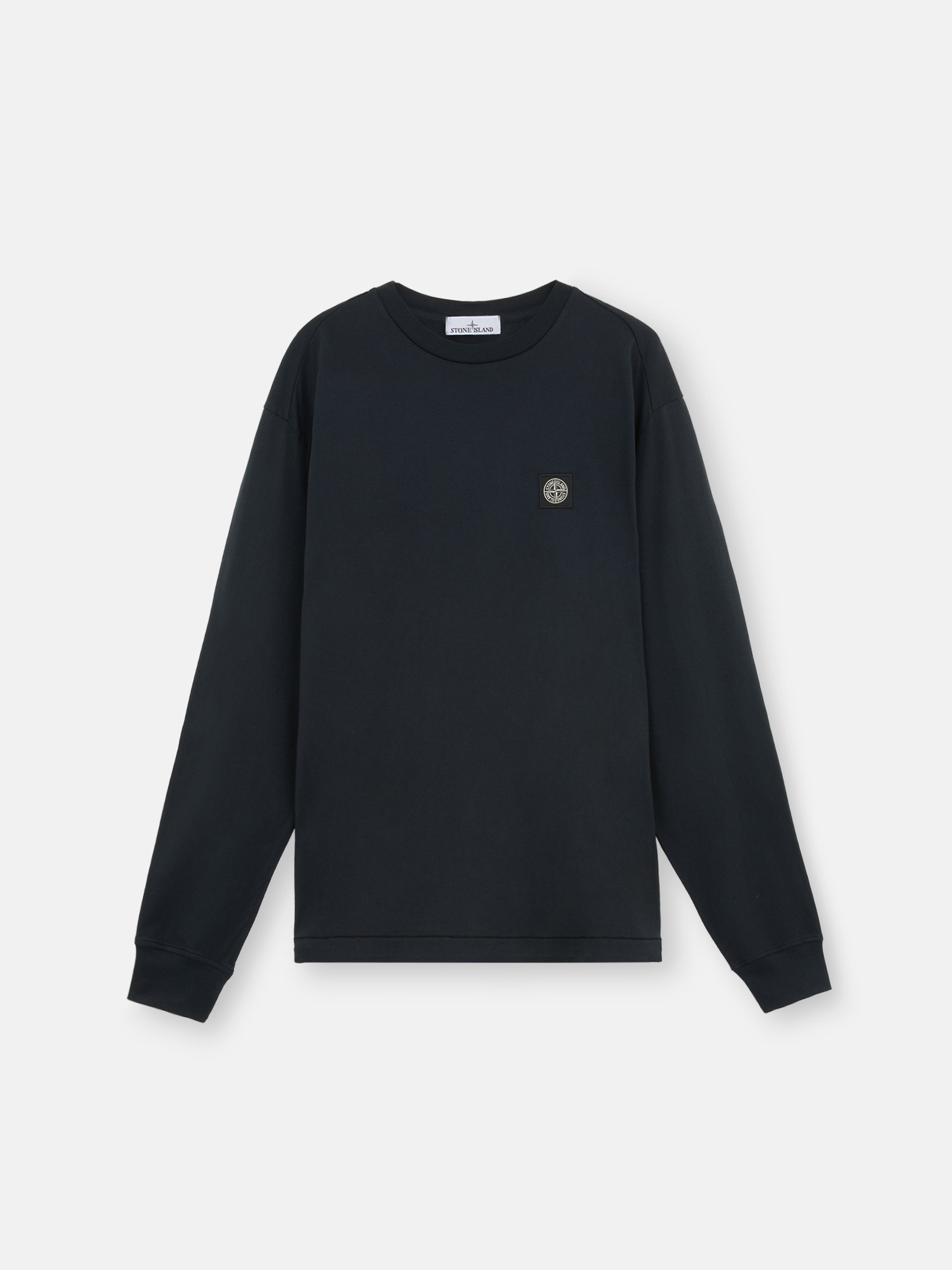 T-shirt in cotton jersey featuring a Stone Island Compass logo patch on the chest, ribbed details, and chain overstitching. Garment dyed. FABRIC RESEARCH AND TREATMENT Long-sleeve T-shirt in cotton jersey. Garment dyed. STYLE AND FIT Ribbed neckline. Stone Island Compass logo patch on chest. Thinly ribbed cuffs. Chain overstitching on the bottom hem. COMPOSITION AND CARE Garment: 100% Cotton. Ribbing: 100% Cotton
