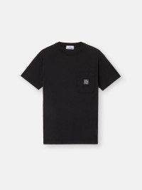 Short-sleeve T-shirt made from organic cotton jersey, featuring chest pocket and Compass patch. Garment dyeing and treatment create a three-dimensional appearance. FABRIC RESEARCH AND TREATMENT Short-sleeve T-shirt in organic cotton jersey. Garment dyed and treated with the 'FISSATO' effect, a water-soluble resin treatment process and garment-dyeing technique creating a three-dimensional appearance. STYLE AND FIT Ribbed neckline. One patch chest pocket featuring the Stone Island Compass logo patch. Overlock seams. Slim fit. COMPOSITION AND CARE Garment: 100% Cotton. Ribbing: 100% Cotton