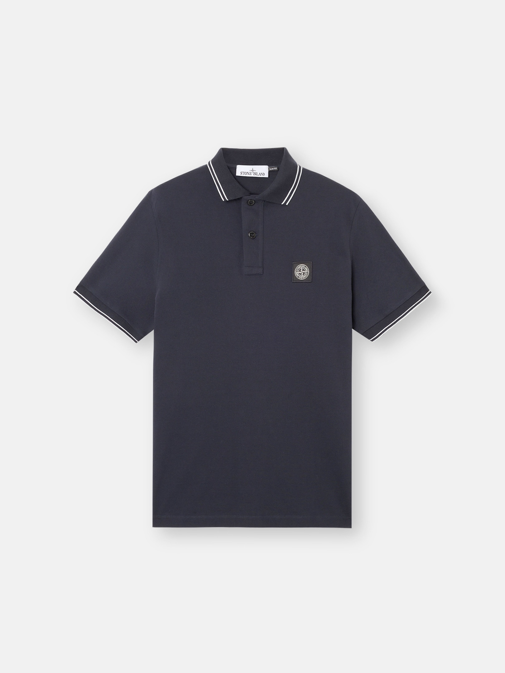 Short-sleeve polo shirt in organic cotton and elastane pique, featuring stripe details on the collar and sleeve edges and Compass patch on chest, with two-button fastening. FABRIC RESEARCH AND TREATMENT Short-sleeve polo shirt in 95% organic cotton / 5% elastane pique. STYLE AND FIT Ribbed collar with two parallel contrast-colored stripes and two-button fastening. Stone Island Compass logo patch on chest. Ribbed sleeve edge with parallel contrast-colored stripes. Bottom side slits with inner striped tape trim. Slim fit. COMPOSITION AND CARE Garment: 95% Cotton 5% Elastane / Spandex. Collar Rib: 97% Cotton 3% Polyester. Cuff Rib: 96% Cotton 4% Polyester