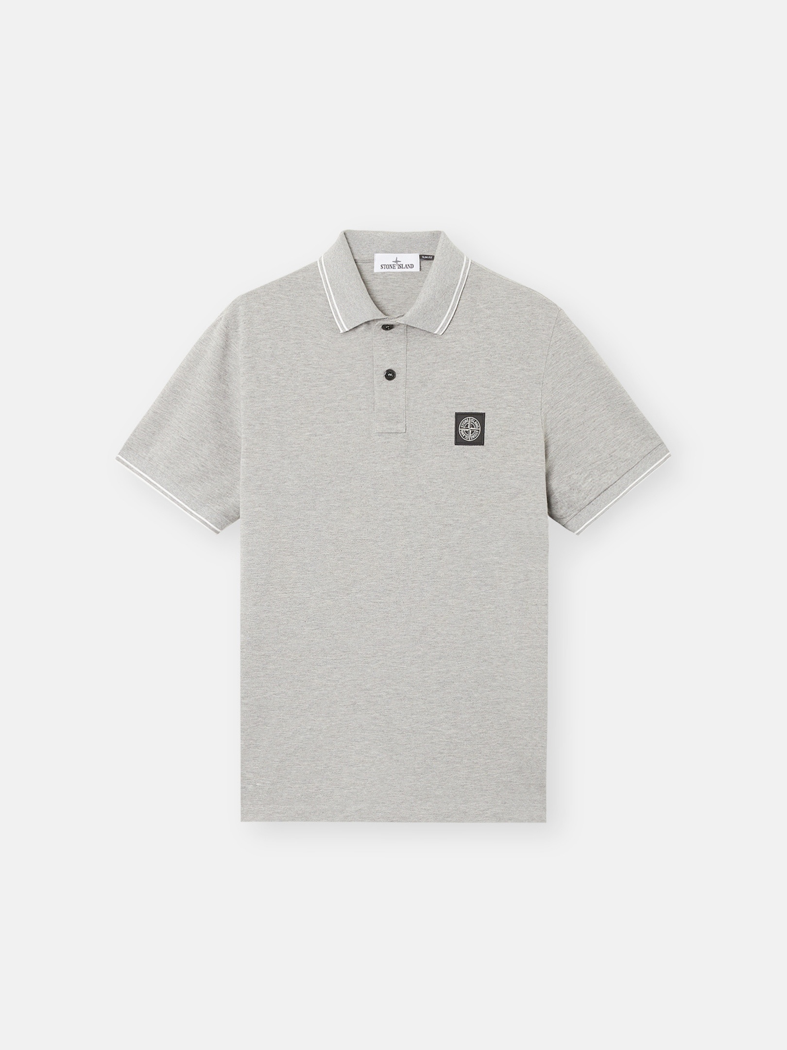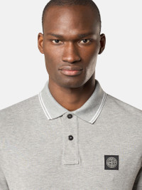 Short-sleeve polo shirt in organic cotton and elastane pique, featuring stripe details on the collar and sleeve edges and Compass patch on chest, with two-button fastening. FABRIC RESEARCH AND TREATMENT Short-sleeve polo shirt in 95% organic cotton / 5% elastane pique. STYLE AND FIT Ribbed collar with two parallel contrast-colored stripes and two-button fastening. Stone Island Compass logo patch on chest. Ribbed sleeve edge with parallel contrast-colored stripes. Bottom side slits with inner striped tape trim. Slim fit. COMPOSITION AND CARE Garment: 95% Cotton 5% Elastane / Spandex. Collar Rib: 97% Cotton 3% Polyester. Cuff Rib: 96% Cotton 4% Polyester