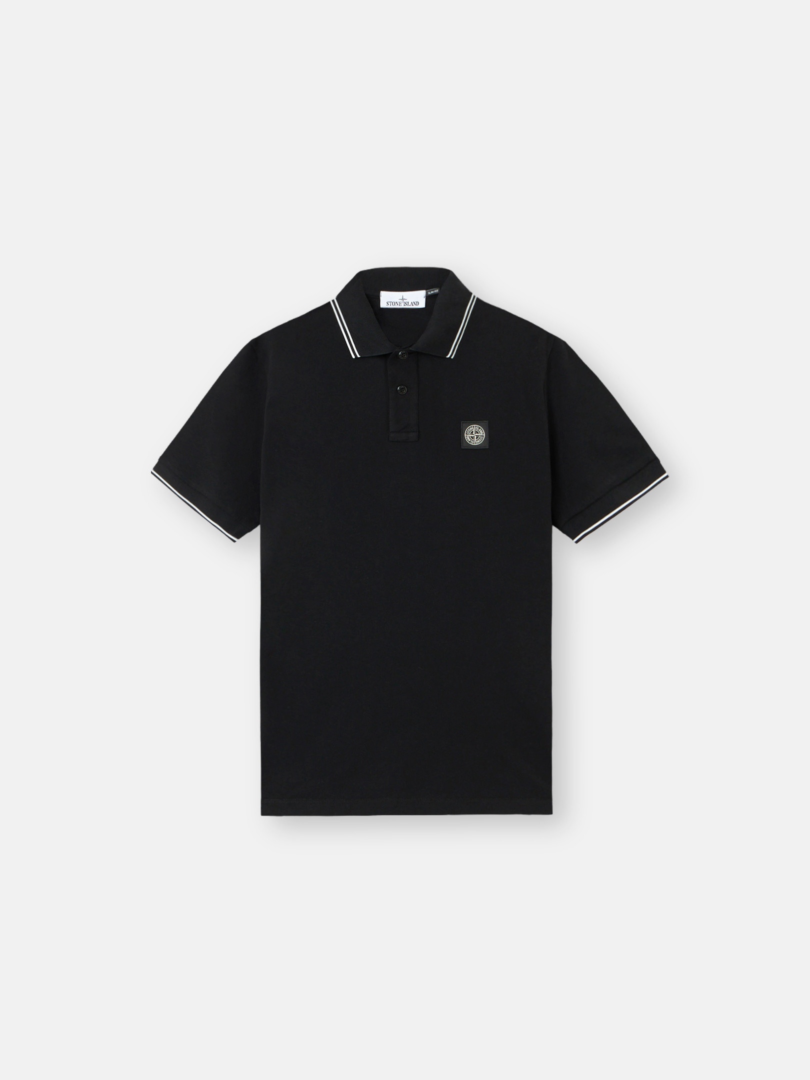 Short-sleeve polo shirt in organic cotton and elastane pique, featuring stripe details on the collar and sleeve edges and Compass patch on chest, with two-button fastening. FABRIC RESEARCH AND TREATMENT Short-sleeve polo shirt in 95% organic cotton / 5% elastane pique. STYLE AND FIT Ribbed collar with two parallel contrast-colored stripes and two-button fastening. Stone Island Compass logo patch on chest. Ribbed sleeve edge with parallel contrast-colored stripes. Bottom side slits with inner striped tape trim. Slim fit. COMPOSITION AND CARE Garment: 95% Cotton 5% Elastane / Spandex. Collar Rib: 97% Cotton 3% Polyester. Cuff Rib: 96% Cotton 4% Polyester