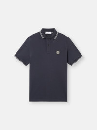 Short-sleeve polo shirt in organic cotton pique with stretch, featuring a ribbed collar with contrast tipping, Compass logo patch on the chest, and two-button fastening. FABRIC RESEARCH AND TREATMENT Short-sleeve polo shirt in 95% organic cotton pique with 5% elastane. STYLE AND FIT Ribbed collar. Two-button fastening. Collar and sleeve cuffs with contrast tipping. Compass logo patch on chest. Side vents with internal tape reinforcement. Slim fit. COMPOSITION AND CARE External Fabric: 95% Cotton 5% Elastane / Spandex Collar Rib: 97% Cotton 3% Polyester Cuff Rib: 96% Cotton 4% Polyester