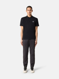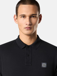 Short-sleeve polo shirt made from organic cotton jersey, featuring a two-button fastening and Compass patch. Garment dyeing and treatment creates a three-dimensional appearance. FABRIC RESEARCH AND TREATMENT Short-sleeve polo shirt in organic cotton jersey. Garment dyed and treated with the 'FISSATO' effect, a water-soluble resin treatment process and garment dyeing technique creating a three-dimensional appearance. STYLE AND FIT Ribbed collar with two-button fastening. Stone Island Compass logo patch on chest. Overlock seams. Slim fit. COMPOSITION AND CARE Garment: 100% Cotton. Ribbing: 100% Cotton