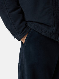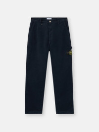 Pants in robust cotton moleskin with hand pockets and multiple pockets on the back. Garment dyed. FABRIC RESEARCH AND TREATMENT Pants in robust cotton moleskin. The garment dyeing process lends a unique appearance to the piece. STYLE AND FIT Slanted hand pockets. Small pocket on right side under waistband with snap. Back patch pockets with slanted entrance and snap; tape loop under left pocket. Small vertical pocket with snap on back of right leg. Stone Island badge on left leg. Zipper and button fly. Loose fit. COMPOSITION AND CARE 100% Cotton