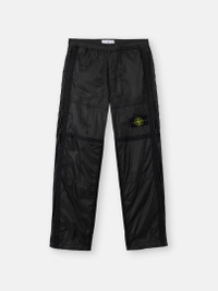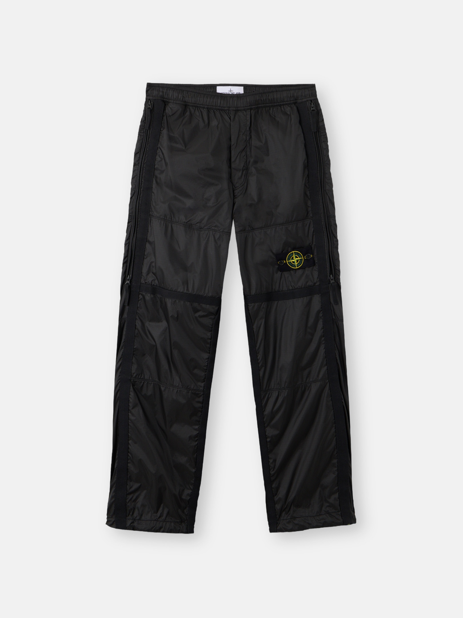 Sweatpants in lightweight yet durable high-tenacity ripstop nylon, featuring side two-way zippers opening onto separate pockets and zippered back pockets, with elasticated cuffs and waistband. FABRIC RESEARCH AND TREATMENT Sweatpants in a high-tenacity ripstop nylon 6.6 that is lightweight yet extremely durable. STYLE AND FIT Two-way zipper along sides that opens onto two separate pockets. Two large back pockets with zipper. Herringbone tape along sides, inseam, and above knees. Stone Island badge on left leg. Elasticated drawcord in cuffs. Elasticated waistband with inner drawcord. Zipper fly. Loose fit. COMPOSITION AND CARE External Fabric: 100% Polyamide / Nylon. Lining: 100% Polyamide / Nylon