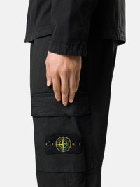 Cargo pants in stretch cotton twill, featuring zipper hand pockets, cargo flap pockets, a back snap pocket, and shaped knees. Garment dyed. FABRIC RESEARCH AND TREATMENT Cargo pants in stretch cotton twill. Garment dyed. STYLE AND FIT Vertical hand pockets with concealed zipper. Cargo bellows pockets with flap and concealed double snap. Stone Island badge on left cargo pocket. Back pocket with fixed flap and concealed snap. Shaped knees. Reinforced inner waistband with contrast lining. Zipper fly and button fastening. Regular tapered fit. COMPOSITION AND CARE 97% Cotton 3% Elastane / Spandex