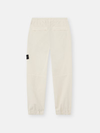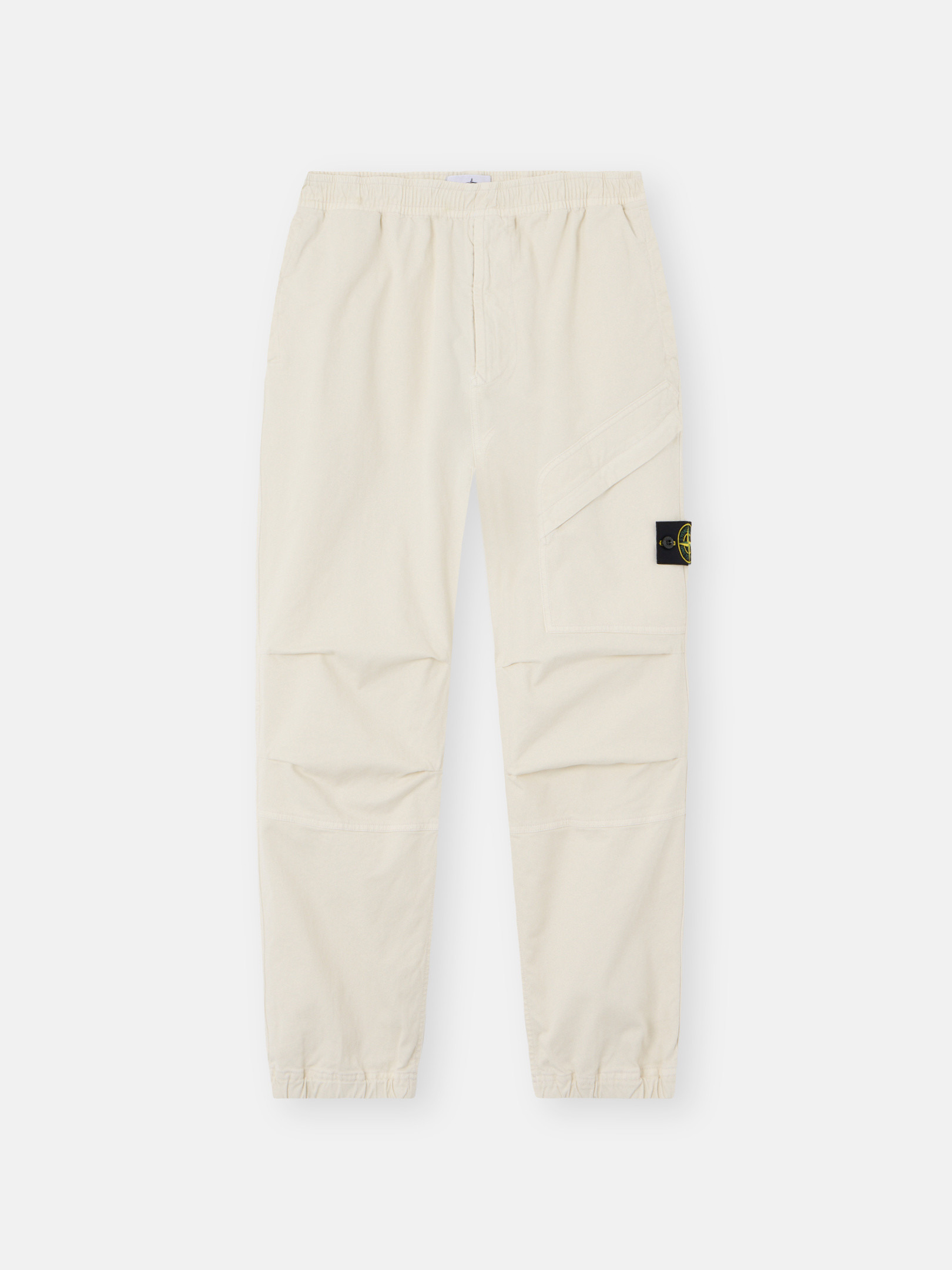 Sweatpants in stretch organic broken twill cotton, featuring an angled zipper pocket, elasticated cuffs, and an elasticated waistband. Garment dyed with the 'OLD' treatment. FABRIC RESEARCH AND TREATMENT Sweatpants in stretch organic broken twill cotton. Garment dyed with the 'OLD' treatment, an exclusive dyeing treatment and subsequent fading on the finished garment for a slightly worn and three-dimensional appearance. STYLE AND FIT Standing hand pockets. Two back pockets with snap under fixed flap. On left leg, patch pocket with diagonal entrance and zipper under fixed flap and Stone Island badge. Shaped knees. Elasticated cuffs. Elasticated waistband with inner drawstring. Zipper fly. Loose fit. COMPOSITION AND CARE 97% Cotton 3% Elastane / Spandex