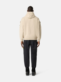 Sweatpants in stretch organic broken twill cotton, featuring an angled zipper pocket, elasticated cuffs, and an elasticated waistband. Garment dyed with the 'OLD' treatment. FABRIC RESEARCH AND TREATMENT Sweatpants in stretch organic broken twill cotton. Garment dyed with the 'OLD' treatment, an exclusive dyeing treatment and subsequent fading on the finished garment for a slightly worn and three-dimensional appearance. STYLE AND FIT Standing hand pockets. Two back pockets with snap under fixed flap. On left leg, patch pocket with diagonal entrance and zipper under fixed flap and Stone Island badge. Shaped knees. Elasticated cuffs. Elasticated waistband with inner drawstring. Zipper fly. Loose fit. COMPOSITION AND CARE 97% Cotton 3% Elastane / Spandex