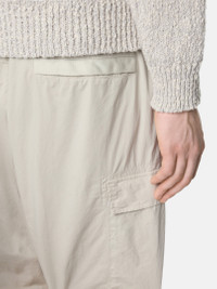 Cargo pants in light stretch cotton tela, featuring hand pockets, snap back pockets, and drawstring cuffs. Garment dyed. FABRIC RESEARCH AND TREATMENT Cargo pants in light stretch cotton tela “paracadute”. Garment dyed. STYLE AND FIT Angled hand pockets. Bellows cargo pockets with flap and three concealed snaps. Stone Island badge on left cargo pocket. Back pocket with fixed tape flap and concealed snap. Internal drawstring at cuffs. Zipper fly and button fastening. Loose fit. COMPOSITION AND CARE 97% Cotton 3% Elastane / Spandex