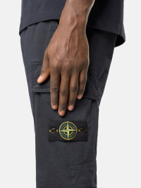 Cargo chino pants in organic cotton stretch broken twill, featuring flat cargo pockets and asymmetrical seams. Garment dyed with the “OLD” treatment for a slightly worn appearance. FABRIC RESEARCH AND TREATMENT Cargo chino pants in organic cotton broken twill with stretch. Garment dyed with the “OLD” treatment, an exclusive dyeing treatment and subsequent fading on the finished garment for a slightly worn and three-dimensional appearance. STYLE AND FIT Angled hand pockets. Flat cargo pockets with angled flap and concealed double snap. Back pocket with fixed flap and concealed snap. Stone Island badge on left leg. Shaped knees. Asymmetrical seam construction. Reinforced inner waistband with contrast lining. Zipper fly and button fastening. Skinny fit. COMPOSITION AND CARE 98% Cotton 2% Elastane / Spandex