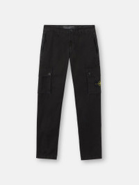 Cargo pants made from brushed organic cotton canvas with multiple pockets. Garment dyed with the 'OLD' treatment for a slightly worn and three-dimensional appearance. FABRIC RESEARCH AND TREATMENT Cargo pants in brushed organic cotton canvas. Garment dyed with the 'OLD' treatment, an exclusive dyeing treatment and subsequent fading on the finished garment for a slightly worn and three-dimensional appearance. STYLE AND FIT Standing hand pockets with hidden zipper fastening. One back slit pocket, with hidden snap fastening. Bellows patch pockets on legs with flap and snap fastening; the left pocket features the Stone Island badge. Zipper and button fly. Slim fit. COMPOSITION AND CARE 100% Cotton