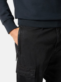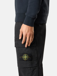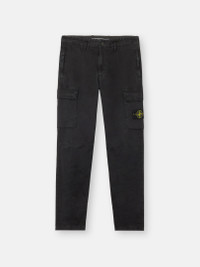 Cargo pants in stretch organic broken twill cotton featuring a slightly worn appearance, and multiple zipper- and snap-fastened pockets. Garment dyed. FABRIC RESEARCH AND TREATMENT Cargo pants in stretch organic broken twill cotton. Garment dyed with the 'OLD' treatment, an exclusive dyeing treatment and subsequent fading on the finished garment for a slightly worn and three-dimensional appearance. STYLE AND FIT Standing hand pockets with hidden zipper fastening. One back slit pocket with hidden snap fastening. Patch bellows pocket on legs with flap and hidden snap fastening; the left pocket features the Stone Island badge. Zipper and button fly. Regular tapered fit. COMPOSITION AND CARE 98% Cotton 2% Elastane / Spandex