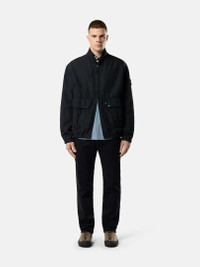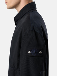Coach jacket in heavy nylon oxford featuring hand pockets, a three-position snap collar, adjustable elasticated cuffs, elasticated hem, and archival-inspired elbow patches. Garment dyed with anti-drop. FABRIC RESEARCH AND TREATMENT Coach jacket made from a heavy nylon oxford. The oxford weave, traditionally used in cotton shirting, has been reinterpreted in nylon to lend strength and lightness to the fabric. Garment dyed with specific recipes and the addition of a special anti-drop agent. STYLE AND FIT Collar with three-position snap to wear standing. Patch hand pockets with pleat detail and flap with three snaps. Second vertical hand pockets. Back yoke. Stone Island Denim Research badge on left sleeve. At elbows, rubberized silicone patches inspired by debossed rubber patches on Stone Island garments from the 1980s, with debossed waffle motif and raised Compass logo. Adjustable elasticated cuffs with slit and snap. Elasticated hem. COMPOSITION AND CARE External Fabric: 100% Polyamide / Nylon Coating: 100% Acrylic Resin