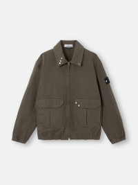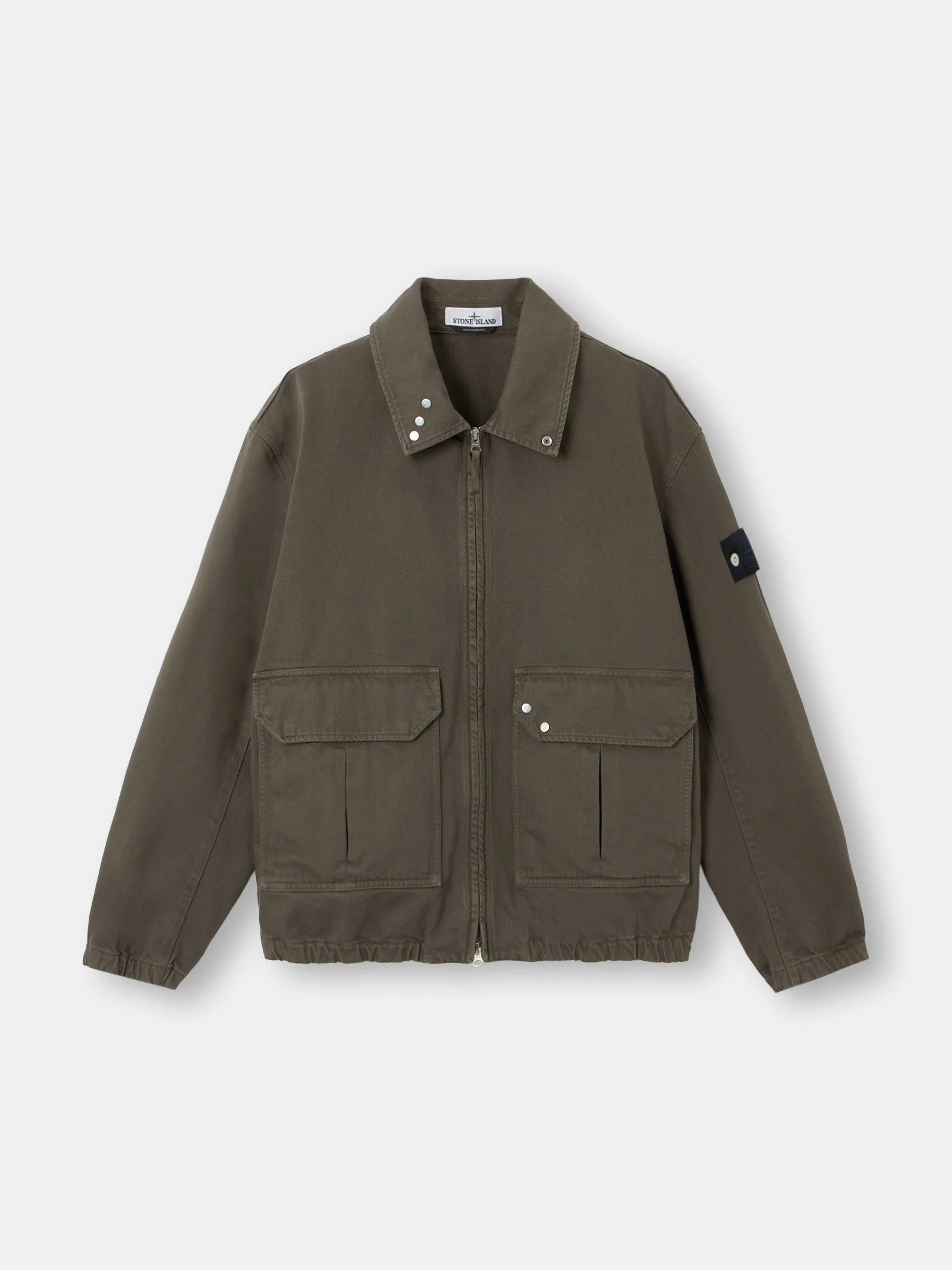 Coach jacket in lightweight 13oz denim with a compact twill structure, featuring a three-position snap collar and elbow patches inspired by archival Stone Island garments. Garment dyed with anti-drop. FABRIC RESEARCH AND TREATMENT Coach jacket made from lightweight 13oz denim, woven with a compact 3/1 twill structure that creates the signature diagonal pattern of denim and lends remarkable durability to the fabric. Garment dyed using specific recipes. Treated with a specific anti-drop agent. STYLE AND FIT Collar with three-position snap to wear standing. Patch hand pockets with pleat detail and flap with three snaps. Second vertical hand pockets. Back yoke. Stone Island Denim Research badge on left sleeve. At elbows, rubberized silicone patches inspired by debossed rubber patches on Stone Island garments from the 1980s, with debossed waffle motif and raised Compass logo. Adjustable elasticated cuffs with slit and snap. Elasticated hem. COMPOSITION AND CARE 100% Cotton