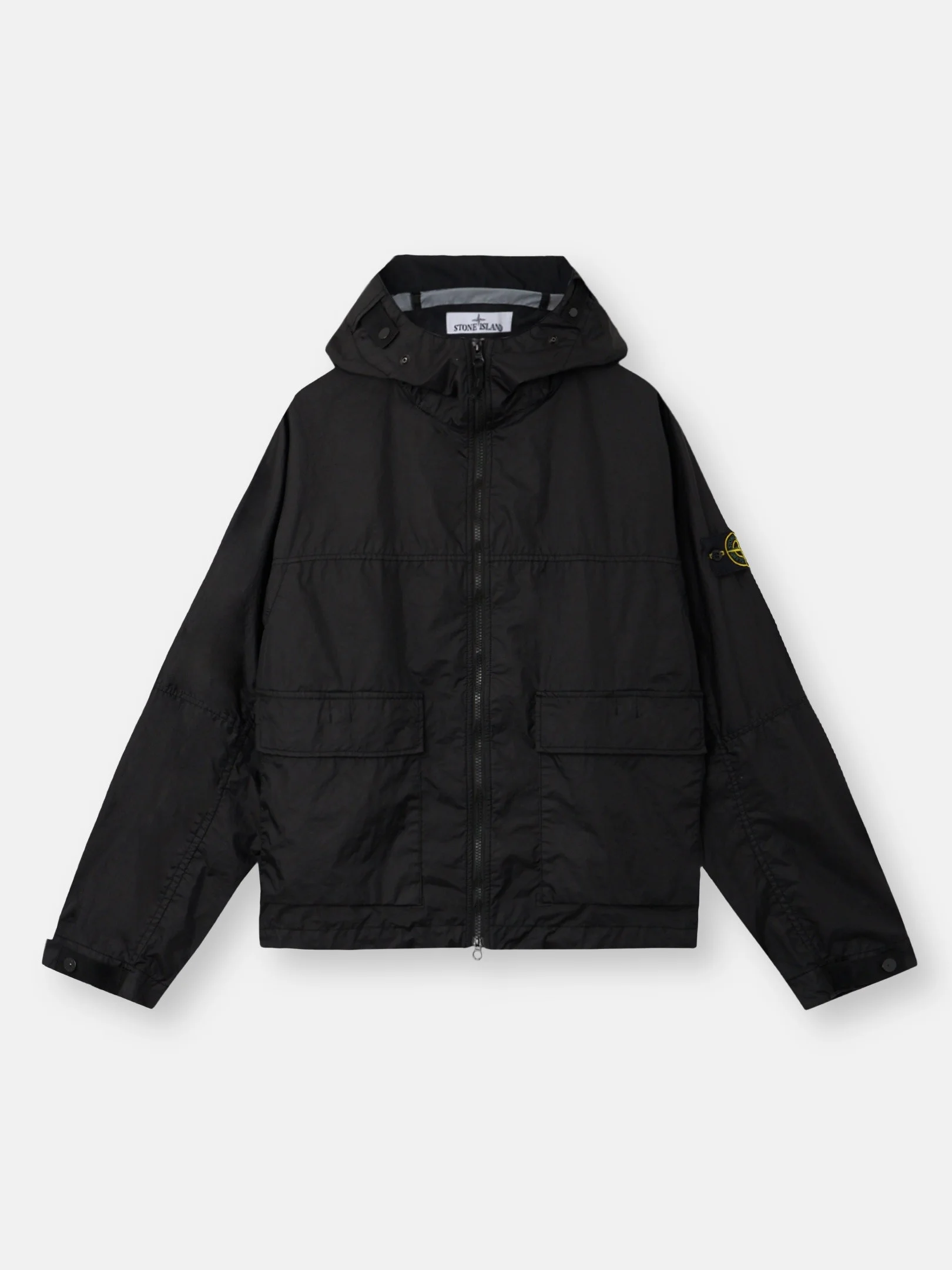 Hooded jacket in a three-layer nylon performance fabric laminated to a breathable, water-resistant membrane, featuring multiple pockets, drawcord hem, and a two-way zipper. Garment dyed with anti-drop. FABRIC RESEARCH AND TREATMENT Hooded jacket in Membrana 3L TC, a three-layer light performance fabric made from an opaque nylon outer face laminated to a breathable, water-resistant membrane, protected by an imperceptible polyester base. Stone Island's garment dyeing expertise gives an outstanding color to the outer face while preserving the performance features of the inner membrane. The addition of a special agent to the dye formula makes the piece anti-drop. STYLE AND FIT Hood with nylon tape drawcord and snap for securing. Bellows hand pockets with flap and concealed snap on nylon tape tab, overlapping second vertical pocket. Front and back yoke. Stone Island badge on left sleeve. Adjustable cuffs with nylon tape tab and snap. Elasticated drawcord with stoppers at hem. Two-way zipper fastening. COMPOSITION AND CARE External Fabric: Outer Layer: 100% Polyamide / Nylon Membrane: 100% Polyurethanic Resin Inner Layer: 100% Polyester Secondary Fabric: 100% Polyamide / Nylon Coating: 100% Polyurethanic Resin